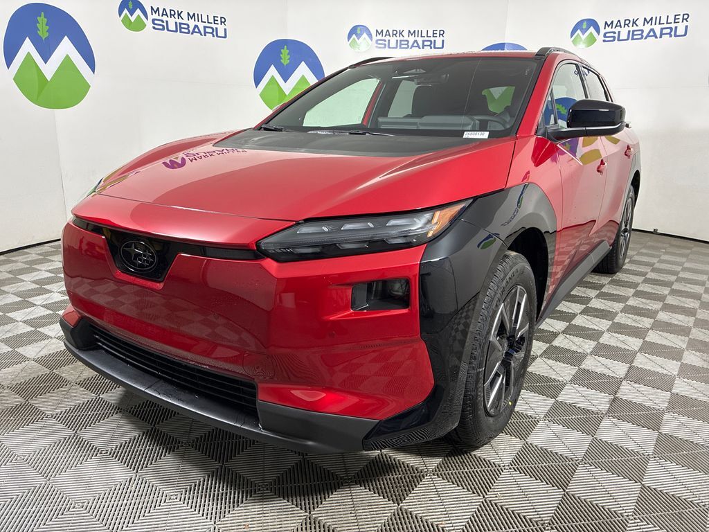 Mark Miller Subaru is the leading Subaru dealership in Utah. Our large inventory and dedicated sales teams has made us the go to destination for the Subaru brand in Utah. Our Promise Price is the best way to buy a Subaru in Utah. Come experience the Mark Miller Subaru difference today! ** This 2026 Elemental Red Pearl Subaru Solterra Premium AWD is well equipped and includes these features and benefits: 4-Wheel Disc Brakes, 6 Speakers, ABS brakes, Air Conditioning, All-Weather Floor Liners, Alloy wheels, AM/FM radio: SiriusXM, Apple CarPlay & Android Auto, Auto High-beam Headlights, Auto-dimming Rear-View mirror, Automatic temperature control, Brake assist, Bumpers: body-color, Driver door bin, Driver vanity mirror, Dual front impact airbags, Dual front side impact airbags, Electronic Stability Control, Emergency communication system, Exterior Parking Camera Rear, Four wheel independent suspension, Front anti-roll bar, Front Bucket Seats, Front Center Armrest, Front dual zone A/C, Front reading lights, Fully automatic headlights, Garage door transmitter: HomeLink, Headlight cleaning, Heated door mirrors, Heated Front Bucket Seats, Heated front seats, Illuminated entry, Knee airbag, Leather steering wheel, Low tire pressure warning, Navigation System, Occupant sensing airbag, Outside temperature display, Overhead airbag, Overhead console, Panic alarm, Passenger door bin, Passenger vanity mirror, Power door mirrors, Power driver seat, Power Liftgate, Power steering, Power windows, Radio data system, Radio: : Subaru 14'' Multimedia System, Rain sensing wipers, Rear anti-roll bar, Rear reading lights, Rear seat center armrest, Rear window defroster, Remote keyless entry, Security system, Speed control, Speed-sensing steering, Split folding rear seat, Spoiler, StarTex Upholstery, Steering wheel mounted audio controls, Telescoping steering wheel, Tilt steering wheel, Traction control, Trip computer, Turn signal indicator mirrors, US