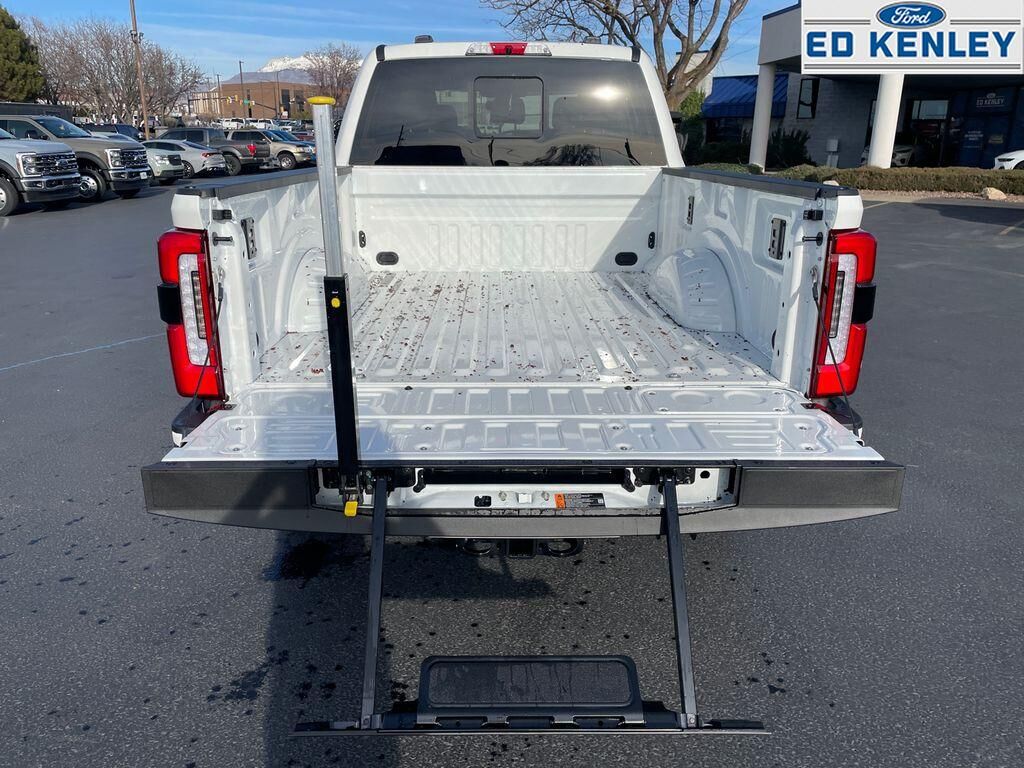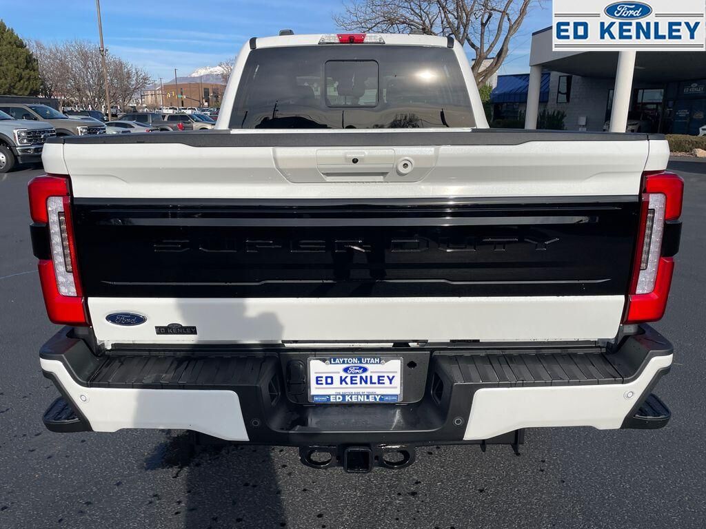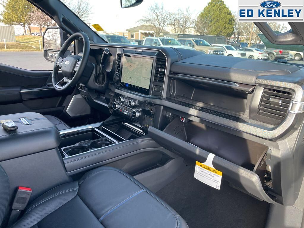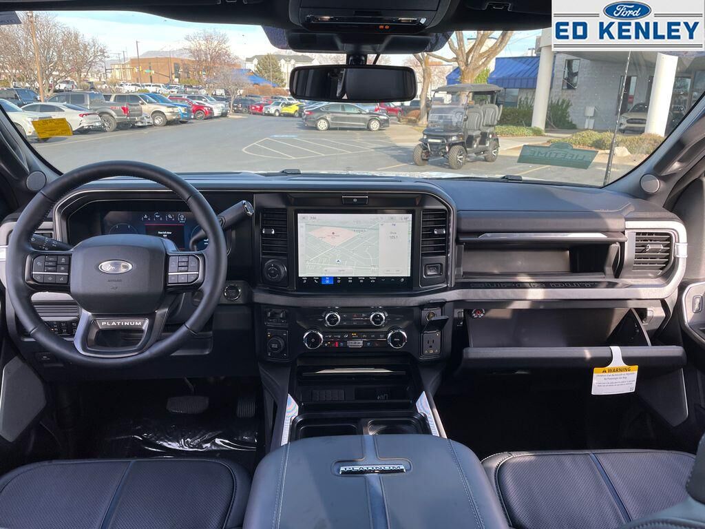Order Code 713A: TorqShift 10-Speed Automatic Transmission; Unique Platinum Leather 40/console/40 Seats; LT275/65Rx20E BSW A/T (4) Tires; B&O Unleashed Sound System by Bang & Olufsen Radio,Star White Metallic TC,Star White Metallic TC,SecuriCode Keyless Entry Keypad (driver's Side),Electronic-Locking with 3.55 Axle Ratio,Front and Rear Wheel Well Liners,All-Weather Floor Mats,Lane Centering hands-on cruise control,Predictive Speed Assist Automatic curve slowdown cruise control,5G Modem - Ford Connectivity Package mobile hotspot internet access,Reverse Camera rear mounted camera,Lane Keeping Alert,Reverse Brake Assist collision mitigation,Adaptive Cruise Control with Stop-and-Go,Head-up display,Brake assist system,Cruise control with steering wheel mounted controls,Power open and close tailgate,Ventilated driver and front passenger seats,Connected Navigation integrated navigation system with voice activation,Keyfob remote start,Heated steering wheel,Heated driver and front passenger seats,Heated rear seats,Leather front seat upholstery,Primary monitor touchscreen,Driver seat power reclining, lumbar support, fore/aft control and height adjustable control,Part-time 4WD,Powerstroke 6.7L V-8 diesel direct injection, DEVCT intercooled turbo, diesel, engine with 475HP,Powerstroke 6.7L V-8,Front wireless smart device charging,SYNC 4 with Enhanced Voice Recognition (Alexa-Built-In) built-in virtual assistant,PCA with AEB and Intersection Assist forward collision mitigation with left turn assist,Driver Alert,SecuriCode external keypad door lock control,Intelligent Access with hands-free access and push button start,Aerial view camera,Smart device remote start,Push-button,Onboard scale,Weight capacity alert,Bluetooth wireless audio streaming,Pro Trailer Backup Assist vehicle and trailer reverse assist,Pro Trailer Hitch Assist automated vehicle to trailer hitching assist,Gauge cluster display size: 12.00,Front mounted camera,Right side camera,Pickup box camera,Left side camera,BLIS with Trailer Tow Coverage blind spot warning,Pedestrian detection warning,Traffic sign recognition,Dual-zone front climate control,SYNC 4 with Enhanced Voice Recognition voice-activated climate control,Auto high-beam headlights,Massaging driver seat,Massaging front passenger seat