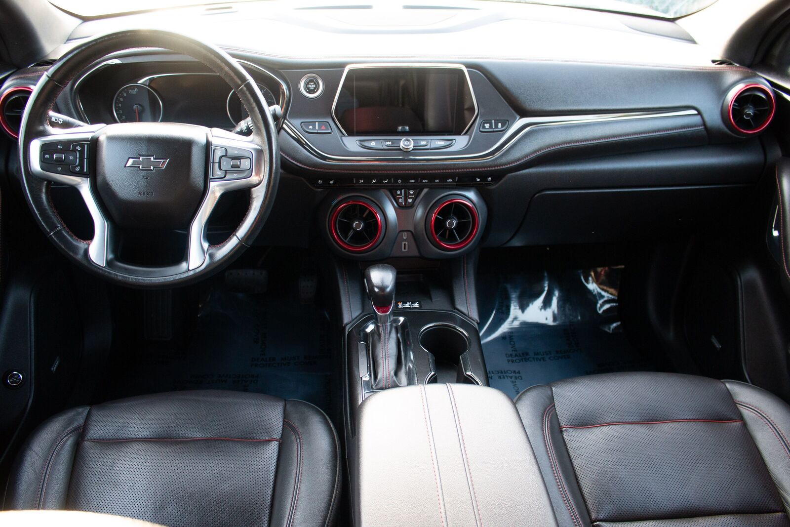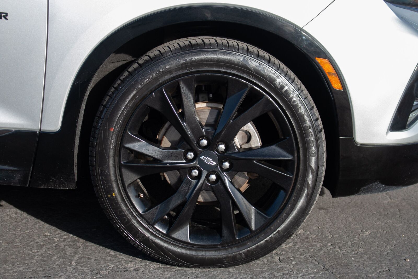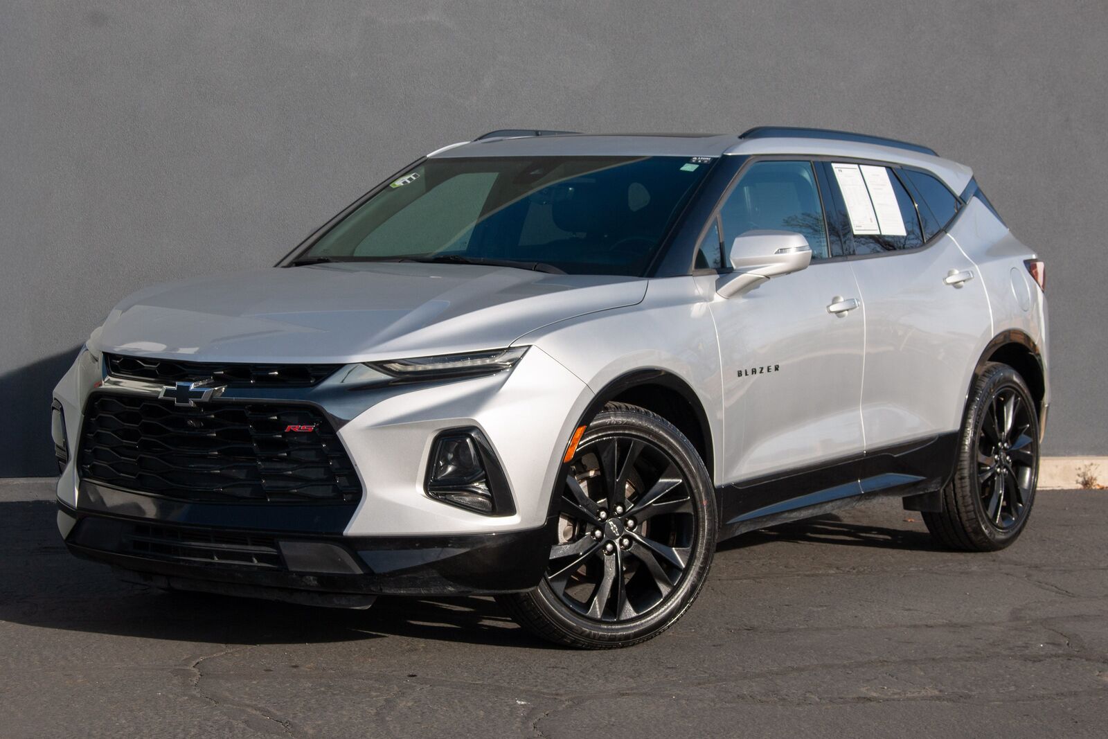 The 2020 Chevrolet Blazer AWD 4dr RS encapsulates a perfect fusion of style- capability- and advanced features- packaged in a sophisticated Silver Ice Metallic exterior. This striking appearance is complemented by bold- 21-inch gloss black aluminum wheels- which not only enhance its athletic stance but also improve performance on diverse terrains. The Blazer's commanding presence is further accentuated by its sleek lines and aggressive front grille- ensuring it stands out on any road.