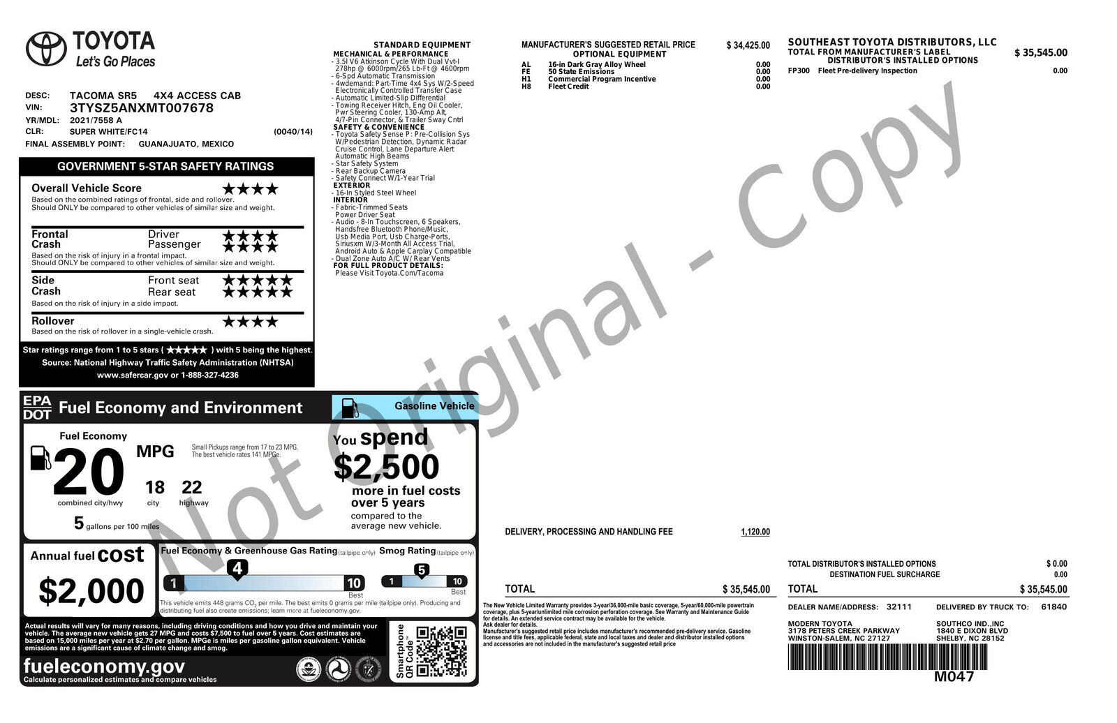 Experience the rugged appeal and dependable performance of this Carfax 1-Owner 2021 Toyota Tacoma 4WD SR5 Access Cab- now available in an eye-catching Super White exterior. Its bold and muscular stance is complemented by the distinctive style of the Access Cab- providing an ample 6' bed for all your hauling needs. Under the hood- you'll find a potent 3.5L V6 engine that offers plenty of power and efficiency for both on-road adventures and off-road escapades.