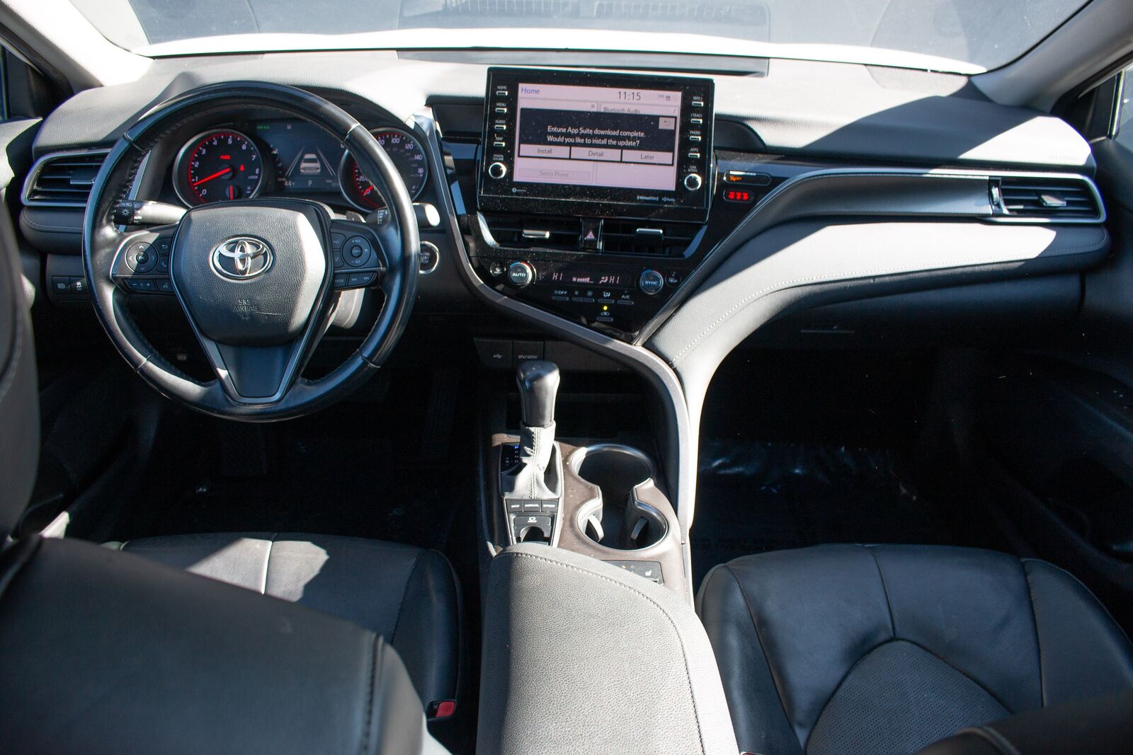 Inside- the Camry XSE welcomes you with a refined Black interior- thoughtfully designed to offer comfort and style. With premium materials and a meticulously crafted dashboard- every journey feels plush and inviting. The cabin also features the carpet mat package (TMS) which ensures that the interior remains protected and pristine- adding functionality to its fashionable allure.