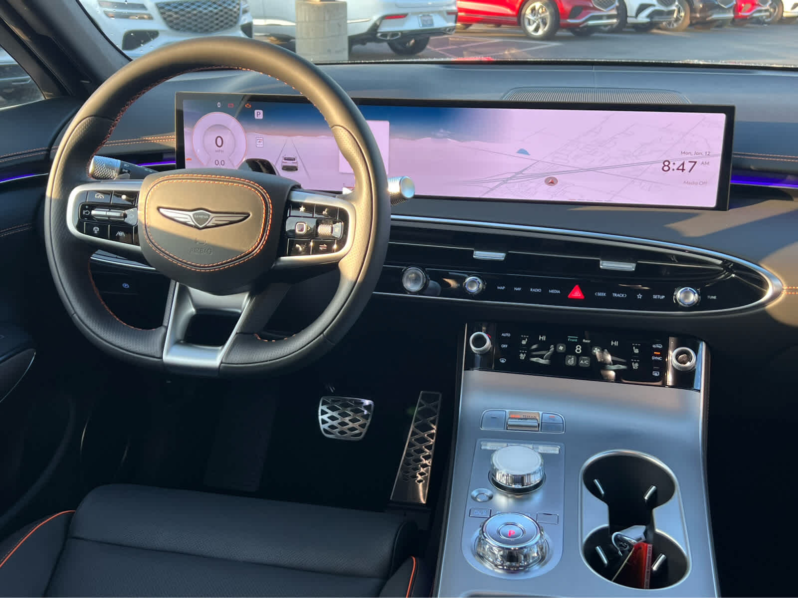 Leather Seats, Navigation, Sunroof, Panoramic Roof, All Wheel Drive, Power Liftgate, Heated Driver Seat, Cooled Driver Seat Rear Spoiler, MP3 Player, Keyless Entry, Remote Trunk Release. Genesis 3.5T Sport Advanced with Uyuni White exterior and Obsidian Black interior features a V6 Cylinder Engine with 375 HP at 5800 RPM*.