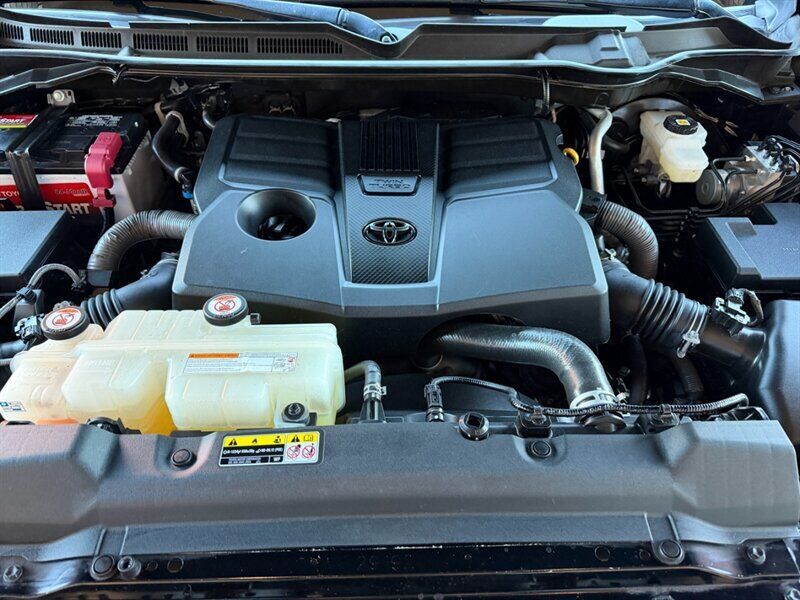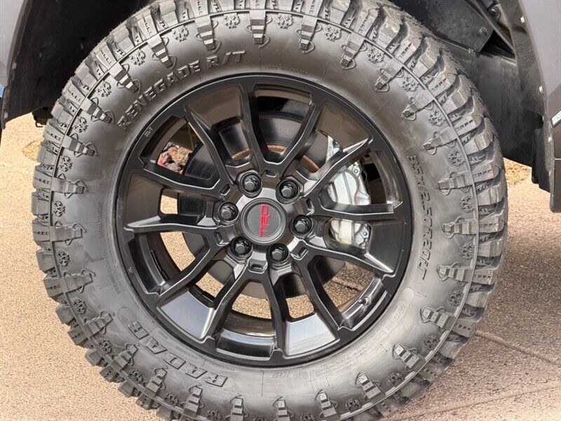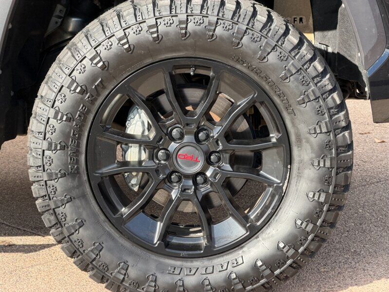 INSTALLED FEATURES: Air filtration, Front air conditioning: automatic climate control, Front air conditioning zones: single, Rear vents: second row, Airbag deactivation: occupant sensing passenger, Front airbags: dual, Knee airbags: dual front, Side airbags: front, Side curtain airbags: front / rear, Antenna type: diversity / mast, Auxiliary audio input: Bluetooth / iPod/iPhone / USB, Radio: AM/FM / touch screen display / voice operated, Radio data system, Satellite radio: SiriusXM, Speed sensitive volume control, Total speakers: 9, ABS: 4-wheel, Braking assist, Electronic brakeforce distribution, Electronic parking brake: auto off, Emergency braking preparation, Front brake type: ventilated disc, Power brakes, Rear brake type: ventilated disc, Center console trim: simulated alloy, Dash trim: simulated alloy, Door trim: simulated alloy, Floor material: carpet, Interior accents: metallic-tone, Shift knob trim: urethane, Steering wheel trim: urethane, Adaptive cruise control, Adaptive stop and go cruise control: semi-automatic, Assist handle: front / rear, Autonomous lane guidance: lane centering, Center console: front console with armrest and storage, Cupholders: front / rear, Multi-function remote: panic alarm / proximity entry system, One-touch windows: 4, Overhead console: front, Power outlet(s): 12V front / USB front / USB rear / USB-C front / USB-C rear, Power steering: variable/speed-proportional, Power windows: lockout button, Push-button start, Reading lights: front / rear, Rearview mirror: auto-dimming, Steering wheel: tilt and telescopic, Steering wheel mounted controls: audio / cruise control / multi-function / phone / voice control, Storage: accessory hook / door pockets / front seatback / sunglasses holder / under rear seats, Sun visors, Vanity mirrors: dual, Active grille shutters, Bumper detail: rear step, Door handle color: black, Fender lip moldings: black, Front bumper color: black, Grille color: black / body-color surround, Mirror color: black, Pickup bed light: LED, Rear bumper color: black, Rocker panel color: body-color, Tailgate: lift assist / power locking / removable, Window trim: black, Connected in-car apps: Google POIs / Google search, Infotainment: Toyota Audio Multimedia, Infotainment screen size: 8 in., Smartphone integration: wireless Android Auto / wireless Apple CarPlay, Clock, Digital odometer, External temperature display, Fuel economy display: MPG / range, Gauge: oil pressure / tachometer, Instrument cluster screen size: 4.2 in., Multi-function display, Trip odometer, Warnings and reminders: coolant temperature warning / low battery / low fuel level / low oil pressure / maintenance due, Daytime running lights, Exterior entry lights: approach lamps, Front fog lights: LED, Headlights: auto delay off / auto high beam dimmer / auto on/off / LED / manual leveling / wiper activated, Taillights: LED, Side mirror adjustments: manual folding / power, Side mirrors: heated, 4WD selector: electronic hi-lo, 4WD type: part time, Auto start/stop, Battery: maintenance-free, Battery saver, Drive mode selector, Active head restraints: dual front, Automatic emergency braking: front / front pedestrian / intersection/junction turn, Camera system: rearview, Check rear seat reminder, Child safety door locks, Child seat anchors: LATCH system, Impact sensor: door unlock / fuel cut-off / post-collision safety system, Lane deviation sensors, Lane keeping assist, Pre-collision warning system: audible warning / intersection/junction turn / pedestrian detection / visual warning, Rearview monitor: in dash, Safety brake pedal system, Traffic sign recognition, Emergency locking retractors: front / rear, Front seatbelts: 3-point, Rear seatbelts: 3-point, Seatbelt force limiters: front / rear, Seatbelt pretensioners: front / rear, Seatbelt warning sensor: front, Driver seat manual adjustments: 4 / reclining, Front headrests: 2 / adjustable, Front seat type: bucket, Passenger seat manual adjustments: 4 / reclining, Rear headrests: 3 / adjustable / foldable, Rear seat folding, Rear seat type: 60-40 split bench, Upholstery: cloth, Anti-theft system: alarm / vehicle immobilizer, Power door locks: anti-lockout / auto-locking, Hill holder control, Stability control, Traction control, Trailer stability control, Front shock type: twin-tube gas, Front spring type: coil, Front stabilizer bar, Front struts, Front suspension classification: independent, Front suspension type: double wishbone, Rear shock type: twin-tube gas, Rear spring type: coil, Rear suspension classification: solid live axle, Rear suspension type: multi-link, Driver assistance app: roadside assistance, Electronic messaging assistance: voice operated / with read function, Hands-free phone call integration: voice operated, Smart device app compatibility: Toyota Connected Services, Smart device app function: lock operation / maintenance scheduling / maintenance status / phone as a key / security event/collision alert / vehicle location, Wi-Fi: hotspot, Wireless data link: Bluetooth, Pickup bed cargo management: tie-down anchors, Tow/Haul mode, Trailer brake controller, Trailer hitch: receiver hitch, Trailer wiring: 4-pin / 7-pin, Spare tire mount location: underbody, Spare tire size: full-size, Spare wheel type: steel, Tire Pressure Monitoring System, Wheels: painted aluminum alloy, Front wipers: variable intermittent, Heated windshield wiper rests, Pickup sliding rear window: power vertical, Power windows: safety reverse, Rear privacy glass, Window defogger: rear, Dash Camera, TRD 20-in. Off-Road Wheels