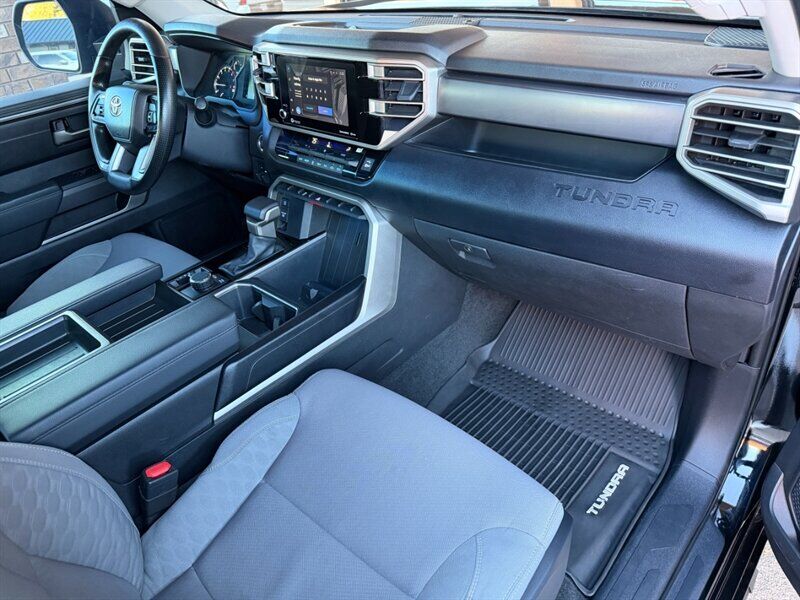 Turn heads and tow with confidence — this 2023 Toyota Tundra SR5 in Midnight Black Metallic with a black interior is a great blend of modern capability, comfort, and proven reliability. Powered by a strong 3.4L twin-turbo V6 producing 389 hp and 479 lb-ft of torque mated to Toyota’s smooth 10-speed automatic, it delivers solid performance for daily driving, highway trips and weekend adventures. Fuel economy is a practical 17 MPG city / 23 MPG highway, and this truck has been gently driven with under 36,000 miles total (averaging less than 9,000 miles per year). Overall condition is excellent.