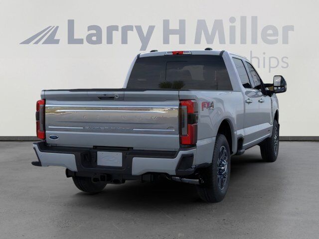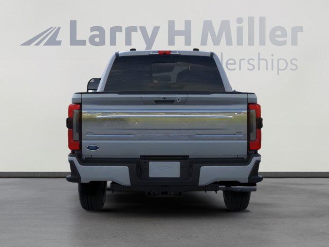 Platinum Plus Package,Unique Split Center Console Armrest,Satin Chrome Door Handles,Premium Venetian Leather Door Panel,Unique Satin Finish Grille,Illuminated Scuff Plates,Premium Luxury Leather-Wrapped Steering Wheel,Premium Leather Instrument Panel Topper,FX4 Off-Road Package,Unique FX4 Off-Road Box Decal,Hill Descent Control,Off-Road Specifically Tuned Shock Absorbers,SiriusXM with 360L,Rapid-Heat Supplemental Cab Heater,Engine Block Heater,5th Wheel/Gooseneck Hitch Prep Package,LED Roof Clearance Lights,Wheels: 20 Bright Machined and Painted Aluminum,410 Amp Dual Alternators,Unique Platinum Leather 40/Console/40 Seats,Order Code 713A,Ford Connectivity Package (1-Year Included),Flow-Through Console,Radio: B&O Unleashed Sound System by Bang & Olufsen,SYNC 4 with Enhanced Voice Recognition,Unique Platinum Plus Luxury Leather 40/Console/40 Seats,4-Wheel Disc Brakes,Internet access capable: 5G Modem - Ford Connectivity Package,Navigation system: Connected Navigation,Emergency communication system: SYNC 4 911 Assist,AM/FM radio: SiriusXM with 360L,Auto High-beam Headlights,Compass,14 Speakers,Heads-Up Display,Auto-dimming Rear-View mirror,Ventilated front seats,Variably intermittent wipers,Turn signal indicator mirrors,Trip computer,Traction control,Tilt steering wheel,Telescoping steering wheel,Steering wheel mounted audio controls,Steering wheel mounted A/C controls,Steering wheel memory,Split folding rear seat,Speed control,Security system,Remote keyless entry,Rear window defroster,Rear step bumper,Rear seat center armrest,Rear reading lights,Rain sensing wipers,Power windows,Power steering,Power passenger seat,Power driver seat,Power door mirrors,Pedal memory,Passenger vanity mirror,Passenger door bin,Panic alarm,Overhead console,Overhead airbag,Outside temperature display,Memory seat,Low tire pressure warning,Leather steering wheel,Illuminated entry,Heated steering wheel,Heated rear seats,Heated front seats,Heated door mirrors,Garage door transmitter,Fully automatic headlights,Front reading lights,Front fog lights,Front dual zone A/C,Front anti-roll bar,Dual front side impact airbags,Dual front impact airbags,Driver vanity mirror,Driver door bin,Delay-off headlights,Bumpers: body-color,Brake assist,Automatic temperature control,Auto tilt-away steering wheel,Alloy wheels,Adjustable pedals,Adjustable head restraints: driver and passenger w/tilt,ABS brakes,Tachometer,Front Center Armrest,Front Bucket Seats,Electronic Stability Control,Air Conditioning,5TH WHEEL/GOOSENECK HITCH PREP PACKAGE -inc: 5 pickup bed attachment points w/plugs 1 frame under-bed cross member and 1 integrated 7-pin connector on driver's side pickup bed wall 5th wheel hitch compatibility: the 5th Wheel/Gooseneck Prep Package (53W) is compatible w/the factory orderable 5th Wheel Hitch Kits (15K and 15L) and dealer-installed Ford accessories 5th Wheel Hitch Kit by Reese - part #BC3Z-19D520-A (8ft box only) The prep package is also compatible w/Reese Signature Series 5th wheel hitch kits updated w/a new Leg Service Kit - part #BC3Z-A00A25-A (8ft box only) The 5th Wheel Hitch Kit (15K) 5th Wheel Hitch Kit (15L) and dealer-installed Ford accessories 5th Wheel Hitch Kit by Reese - part #BC3Z-19D520-A is not released to the short box (6.75ft box) Note: the short pickup box provides less clearance between the cab and 5th wheel trailer compared to long box pickups The receiver centerline of the hitch should be mounted at least 2 forward from the rear-axle of the,PLATINUM PLUS PACKAGE -inc: satin chrome tailgate applique premium suede wrapped pillars premium leather interior grab handles and upgraded floor mat accents matching premium interior theme Platinum Plus experience includes premium maintenance plan - coverage up to 2 years or 25 000 miles (whichever comes first) Covers routine inspections preventive care and replacement of normal wear and tear items that require periodic attention elite welcome call welcome package and tribute item accessories discount (90 day window) Ford rewards upgrade tier and 1:1 texting w/Ford truck expert Premium Venetian Leather Door Panel applied French stitching Illuminated Scuff Plates Premium Leather IP Topper upgraded Microwelt application Pro Power Onboard - 2kW dual alternators 12V 250 Amp 24V 150 Amp Premium Luxury Leather-Wrapped Steering Wheel Unique smoked truffle Wheels: 20 Bright Machined Aluminum Carbonized gray high-gloss painted gloss black hub cover/center ornament Up,ELECTRONIC-LOCKING W/3.55 AXLE RATIO,TRANSMISSION: TORQSHIFT 10-SPEED AUTOMATIC -inc: SelectShift and selectable drive modes: normal eco slippery roads tow/haul and off-road (STD),RAPID-HEAT SUPPLEMENTAL CAB HEATER -inc: 410 Amp Dual Alternators 250 Amp 160 Amp,POWER-DEPLOYABLE RUNNING BOARDS,SMOKED TRUFFLE UNIQUE PLATINUM PLUS LUXURY LTHR 40/CONSOLE/40 SEATS -inc: premium Venetian leather seats w/French stitching and upgraded perforated seats,GLACIER GRAY METALLIC TRI-COAT,ENGINE: 6.7L HIGH OUTPUT POWER STROKE V8 DIESEL -inc: Turbo diesel B20 manual push-button engine-exhaust braking and Operator Commanded Regeneration (OCR) 250 Amp Alternator 34 Gallon Fuel Tank GVWR: 12 000 lb Payload Package 3.31 Axle Ratio Dual 68 AH AGM 750 CCA Batteries,TIRES: LT275/65RX20E BSW A/T (4) -inc: Spare may not be the same as road tire (STD),FX4 OFF-ROAD PACKAGE -inc: Hill Descent Control Off-Road Specifically Tuned Shock Absorbers front/rear Transfer Case & Fuel Tank Skid Plates Unique FX4 Off-Road Box Decal,ORDER CODE 713A -inc: 410 Amp Dual Alternators 250 Amp 160 Amp,LED ROOF CLEARANCE LIGHTS,ENGINE BLOCK HEATER -inc: grille cover,Locking/Limited Slip Differential,Four Wheel Drive,Tow Hitch,Power Steering,ABS,4-Wheel Disc Brakes,Brake Assist,Aluminum Wheels,Tires - Front All-Terrain,Tires - Rear All-Terrain,Conventional Spare Tire,Tow Hooks,Heated Mirrors,Power Mirror(s),Integrated Turn Signal Mirrors,Power Folding Mirrors,Rear Defrost,Intermittent Wipers,Variable Speed Intermittent Wipers,Rain Sensing Wipers,Privacy Glass,R