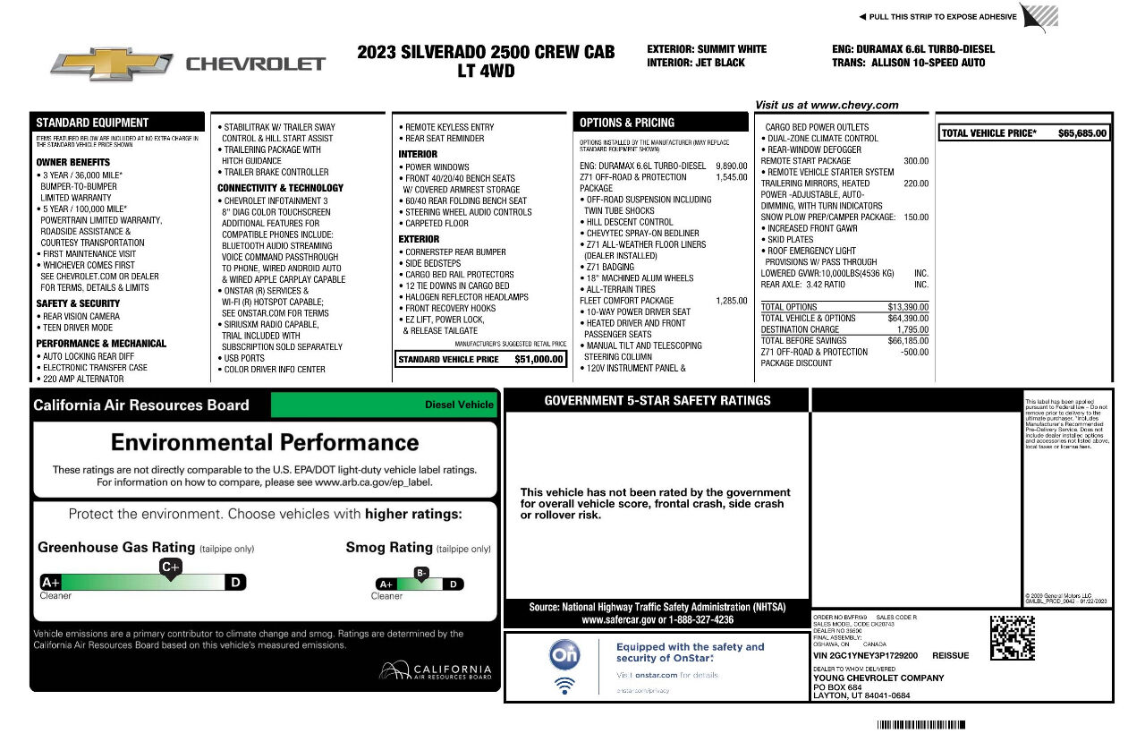 SALE PRICE: $47,995.00 ! _____2023 Chevy Silverado 2500HD- 'LT' Crew Cab (4Dr) Stndrd Bed (6.5')--- Z71- 6.6L Turbo Diesel Motor--- Duramax L5P- Automatic Transmission--- Allison, 10-Spd- 4x4- 36k Miles- Clean Title- Stock# 1614Mechanically Inspected, and Checked out Great! __ Running/Driving Beautifully. Ready for the Road!PRICE: $52,995.00Call 208-779-8213 __ (Monday - Friday, 9am - 5pm) Visit Silverado Auto Sales online at silveradoautosales.com to see more pictures of this vehicle or call us at 208-779-8213 today to schedule your test drive.