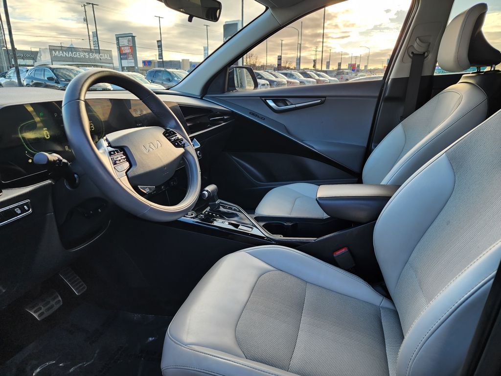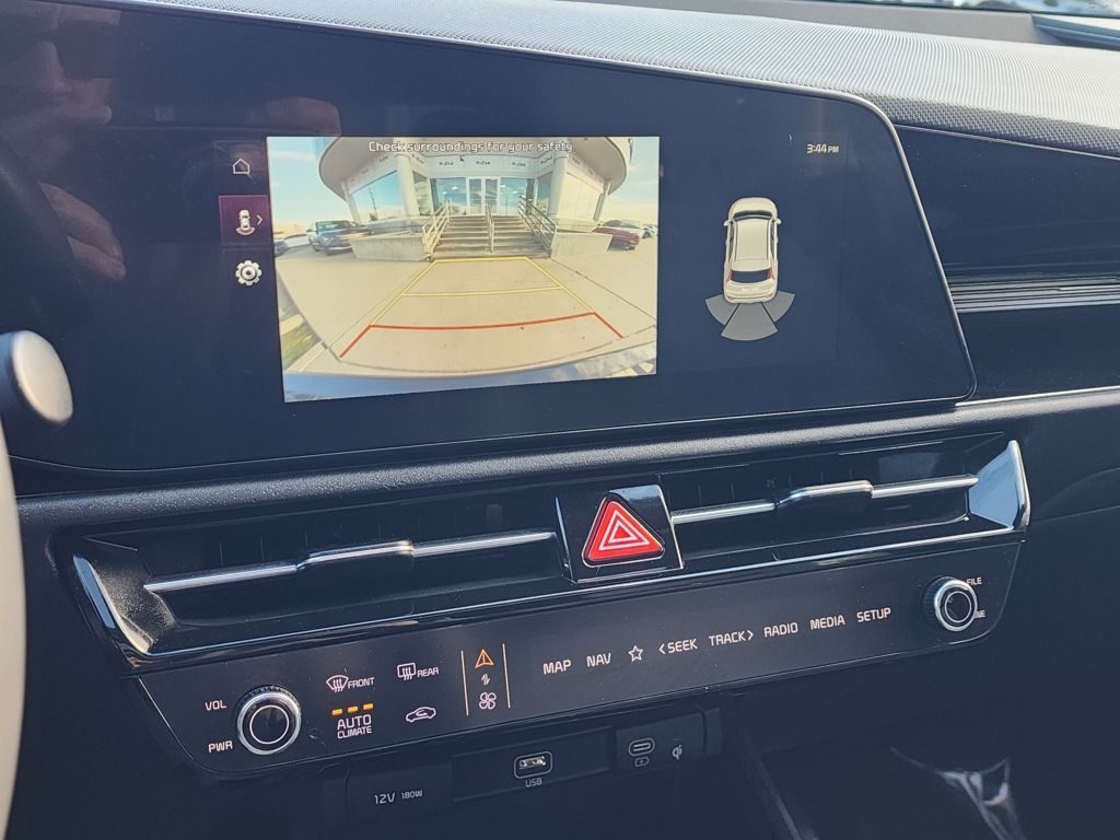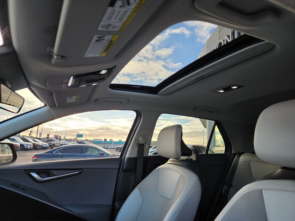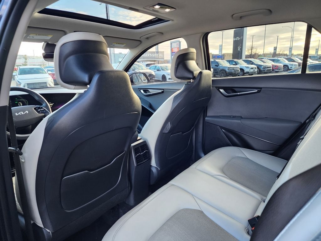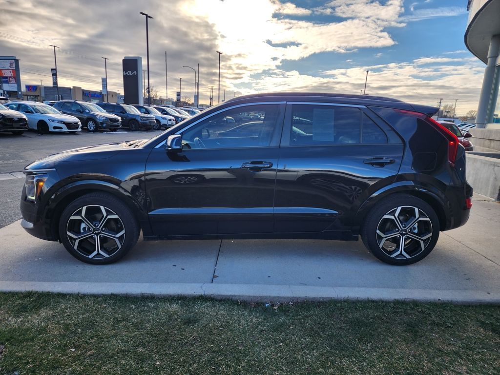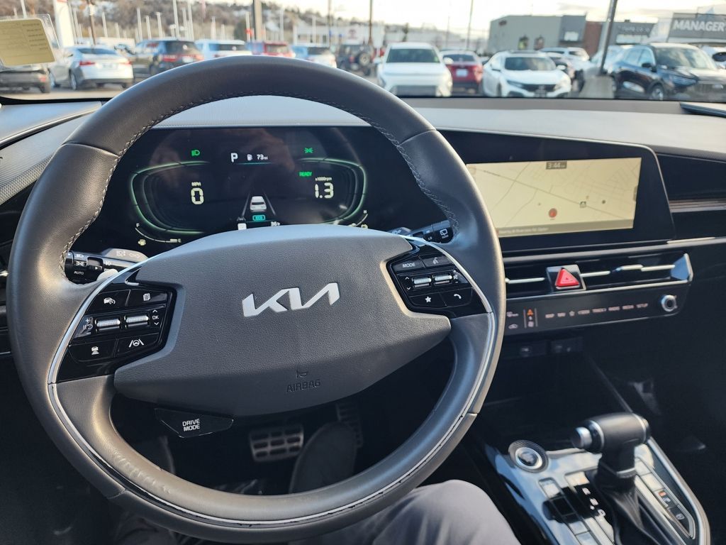 Aurora Black Pearl 2023 Kia Niro EX Touring FWD 6-Speed Automatic 1.6L I4 DGI Hybrid DOHC 16V LEV3-SULEV30 1.6L I4 DGI Hybrid DOHC 16V LEV3-SULEV30, 4-Wheel Disc Brakes, 4.438 Axle Ratio, 6 Speakers, ABS brakes, Air Conditioning, Alloy wheels, AM/FM radio: SiriusXM, Apple CarPlay & Android Auto, Auto High-beam Headlights, Automatic temperature control, Brake assist, Bumpers: body-color, Carpet Floor Mats, Cloth & Vegan Leather-Trimmed Seats, Delay-off headlights, Driver door bin, Driver vanity mirror, Dual front impact airbags, Dual front side impact airbags, Electronic Stability Control, Emergency communication system: Kia Connect (includes 1 year free trial), Exterior Parking Camera Rear, Four wheel independent suspension, Front anti-roll bar, Front Bucket Seats, Front Center Armrest, Front dual zone A/C, Front fog lights, Front reading lights, Fully automatic headlights, Heated door mirrors, Heated Front Bucket Seats, Heated front seats, Illuminated entry, Knee airbag, Leather Shift Knob, Light Gray Interior Color Package, Low tire pressure warning, Navigation System, Occupant sensing airbag, Outside temperature display, Overhead airbag, Overhead console, Panic alarm, Passenger door bin, Passenger vanity mirror, Power door mirrors, Power driver seat, Power moonroof, Power steering, Power windows, Radio: AM/FM/HD/SiriusXM, Rain sensing wipers, Rear anti-roll bar, Rear seat center armrest, Rear window defroster, Rear window wiper, Remote keyless entry, Security system, Smart Key w/ Push Button and Remote Start, Speed control, Speed-sensing steering, Split folding rear seat, Spoiler, Steering wheel mounted audio controls, Telescoping steering wheel, Tilt steering wheel, Traction control, Trip computer, Turn signal indicator mirrors, Variably intermittent wipers, Wheels: 18'' Alloy w/Machined Finish, 1.6L I4 DGI Hybrid DOHC 16V LEV3-SULEV30.