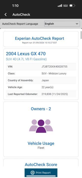 Clean Title, 2004 Lexus GX 470 4WD