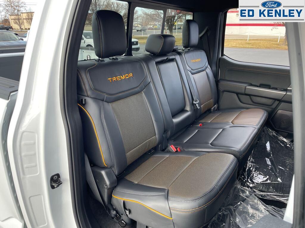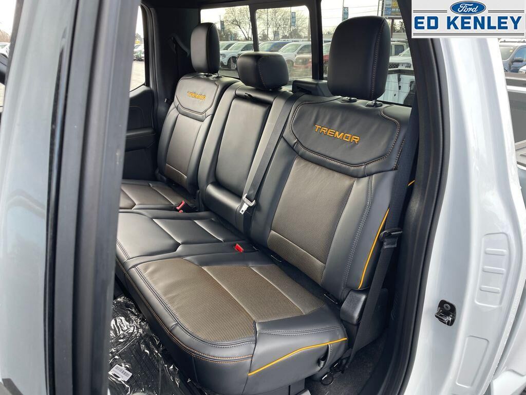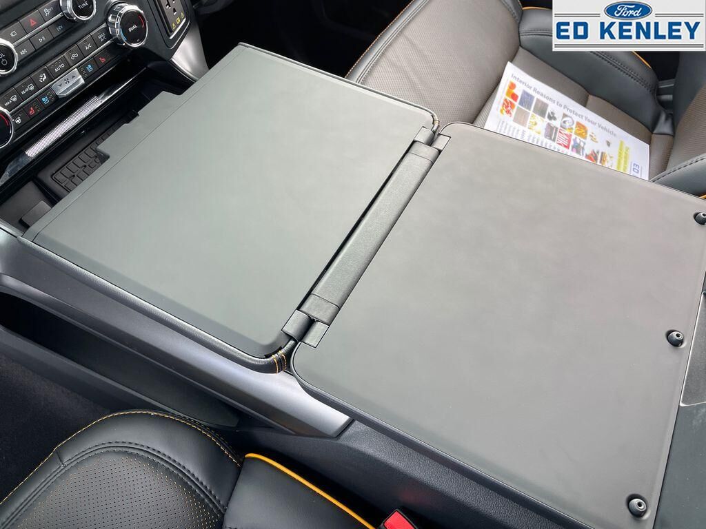 Equipment Group 402A High: Power-Adjustable Pedals with Memory; Electronic Locking with 3.73 Axle Ratio; Electronic 10-Speed Automatic Transmission; Premium Wrapped Steering Wheel; Unique Tremor Leather-Trimmed Bucket Seats; Modular Front Bumper and Carbon Black Rear Bumper; Media Bin Door; Hi-Lock Transfer Case; Power Glass Heated Sideview Mirrors; 18" Alloy with Dark Matte Finish Wheels; Ambient Lighting; LED Taillamps; Two-Speed Automatic AWD with Mechanical Locking 4WD; B&O Unleashed Sound System by Bang & Olufsen Radio; Front Axle with Torsen Differential; 2nd Row Heated Seats; Rain-Sensing Wipers; 275/70R18 All-Terrain Tires; Universal Garage Door Opener; Heated Steering Wheel; Heads-Up Display,Bed Utility Package: 4 Pickup Box Tie-Down Plates; 6" Extended Running Boards; LED Box Lighting; Pro Access Tailgate; Power Tailgate,Mobile Office Package: Wireless Charging; Partitioned Lockable Rear Storage; Console Worksurface,Tow/haul Package: Integrated Trailer Brake Controller,Tray Style Floor Liner with Carpet Mats,SYNC 4 AppLink/Apple CarPlay/Android Auto smart device wireless mirroring,Pre-Collision Assist with Pedestrian Detection,Predictive Speed Assist Automatic curve slowdown cruise control,Unresponsive driver assist,FordPass Connect 5G mobile hotspot internet access,Ford Co-Pilot360 - Reverse Camera rear mounted camera,Lane Keeping Alert,Cross-Traffic Alert with Reverse Brake Assist collision mitigation,Adaptive Cruise Control with Stop-and-Go,Head-up display,Brake assist system,Cruise control with steering wheel mounted controls,Ventilated driver and front passenger seats,Connected Navigation integrated navigation system with voice activation,Keyfob remote start,Heated steering wheel,Heated driver and front passenger seats,Heated rear seats,Leather front seat upholstery,Primary monitor touchscreen,Driver seat power reclining, lumbar support, cushion tilt, fore/aft control and height adjustable control,Part-time 4WD,EcoBoost 3.5L V-6 port/direct injection, DOHC, variable valve control, twin turbo, regular unleaded, engine with 400HP,EcoBoost 3.5L V-6 DOHC,Front wireless smart device charging,SYNC 4 with Enhanced Voice Recognition (Alexa-Built-In) built-in virtual assistant,PCA with AEB and Intersection Assist forward collision mitigation with left turn assist,Ford Co-Pilot360 - Evasive Steering Assist evasion assist system,Smart key with hands-free access and push button start,360 Degree Camera aerial view camera,Smart device remote start,Push-button,Automatic brake hold,Active aerodynamics,Bluetooth wireless audio streaming,Pro Trailer Backup Assist vehicle and trailer reverse assist,Pro Trailer Hitch Assist automated vehicle to trailer hitching assist,Gauge cluster display size: 12.00,Front mounted camera with washer,Right side camera,Pickup box camera,Left side camera,BLIS (Blind Spot Information System),Dual-zone front climate control,SYNC 4 with Enhanced Voice Recognition voice-activated climate control,Rock Crawl Mode off-road speed control,Full gauge cluster screen,Auto High Beam auto high-beam headlights,SecuriLock immobilizer,B&O Unleashed Sound System by Bang & Olufsen speakers