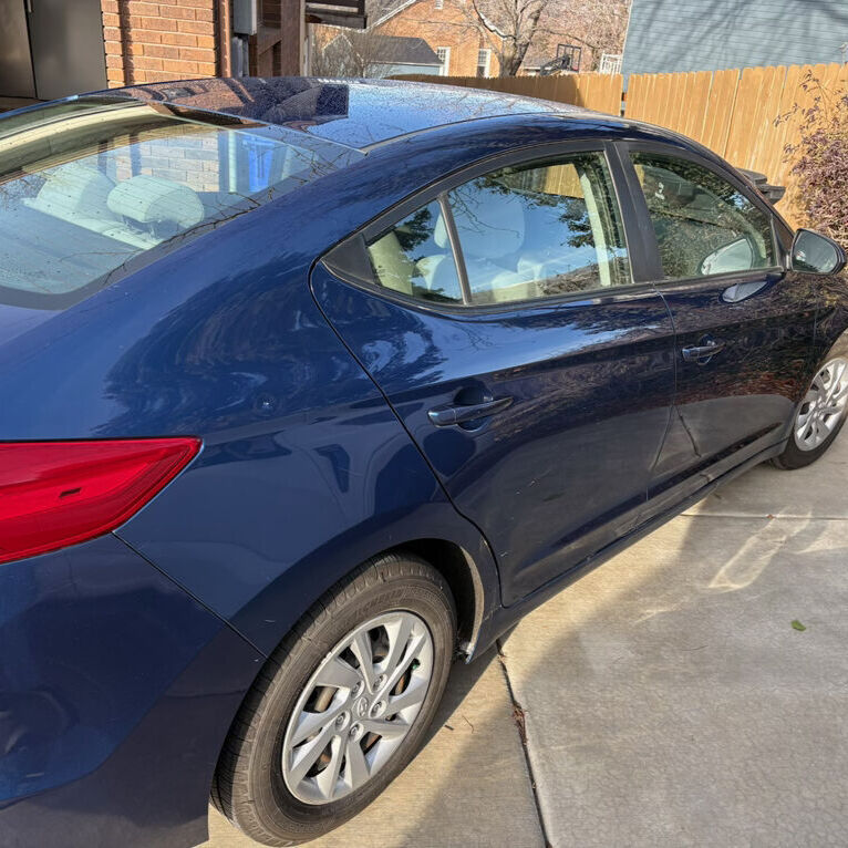 Looking for a reliable and efficient sedan? This 2018 Hyundai Elantra SE might be just what you need. With 90,000 miles on the odometer, it's in good condition and priced below average. The sleek blue exterior and comfortable gray interior make for an appealing combination. Snow tires included.