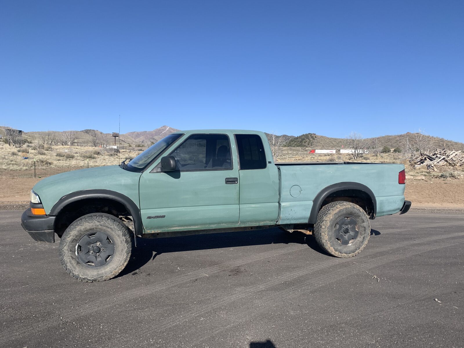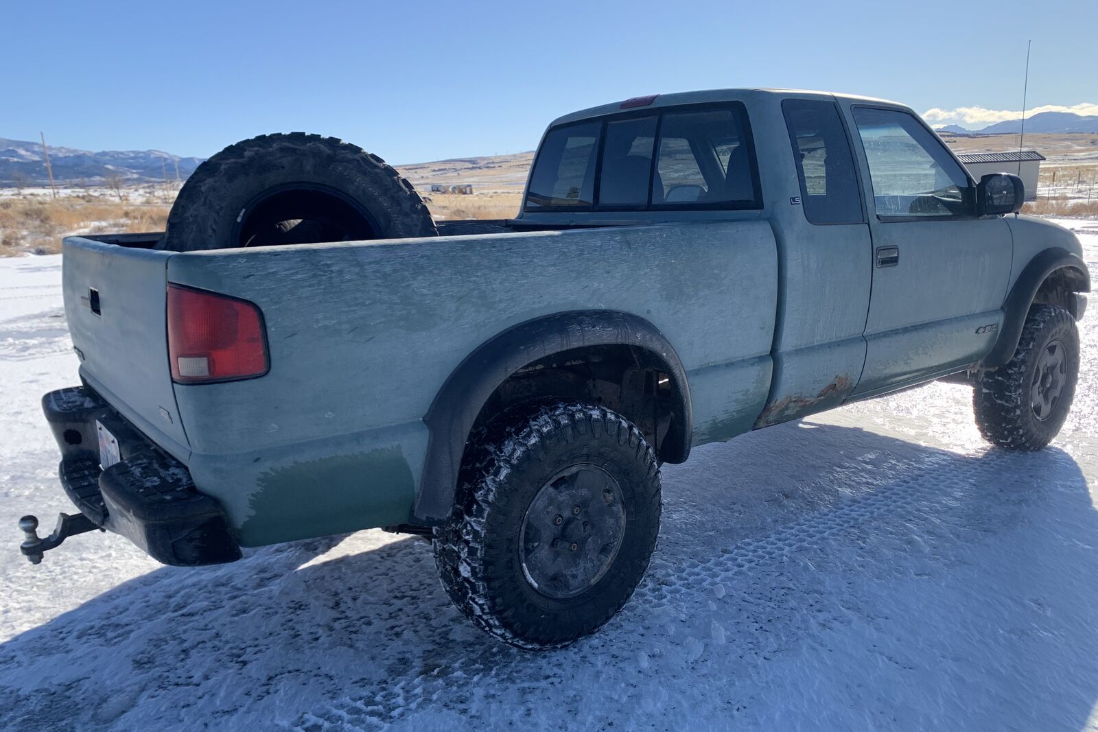 The like new mud tires are installed. NO SCAMMERS! 2000 Chevrolet, three door extended cab, 4x4, S14S pickemup truck, runs and drives good, good heat, A/C and cruise, 4x4 works and has a manual pull cable for front axle engagement, we’ve had it several years just don’t use it a lot because it seems I either need a full size truck or more seats, it’s seating for three. I have a like new set of Ironman mud tires that are included and may get installed now that we finally have some winterish weather… clear title in hand, $3,750