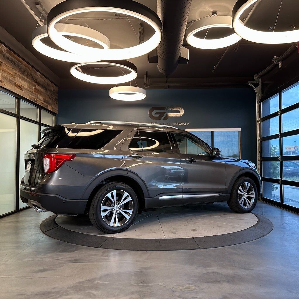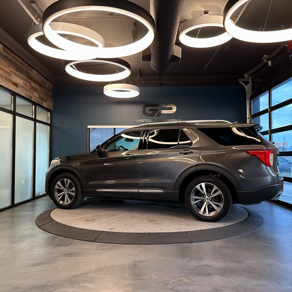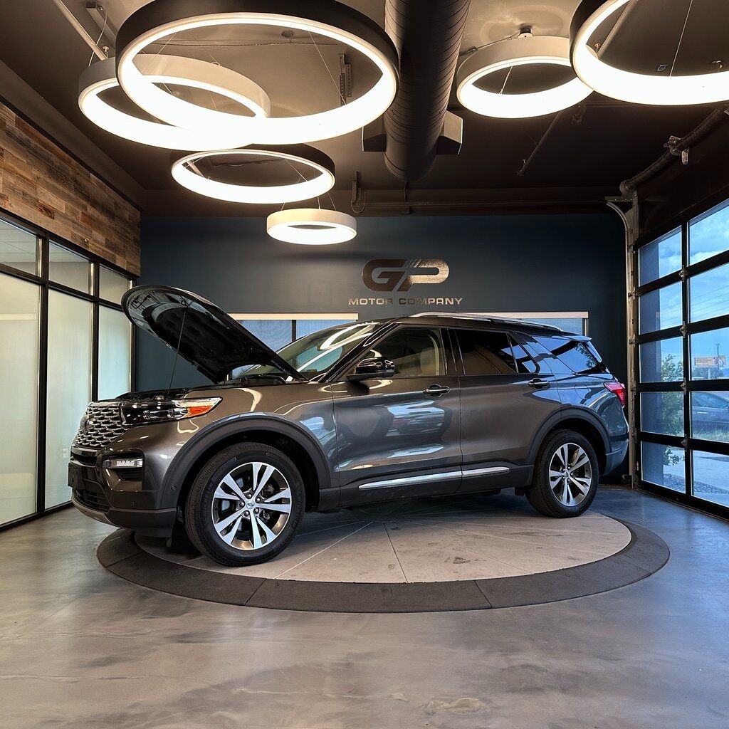 One owner, no accident history, 4WD! Platinum trim with a power moonroof, power liftgate, heated front and rear seats, 3rd row seating, backup camera, heated steering wheel, and much more! 2020 Ford Explorer Platinum 4WD with branded title from hail. 10-Speed Automatic 3.0L EcoBoost V6
