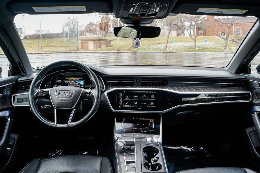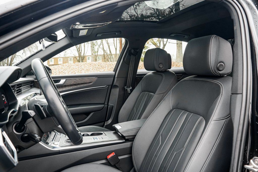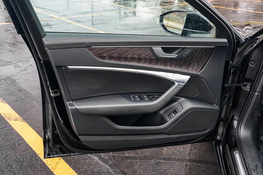 Black 2023 Audi A6 45 Premium quattro quattro 7-Speed Automatic 2.0L 4-Cylinder TFSI quattro, Black Leather, ABS brakes, Alloy wheels, Compass, Electronic Stability Control, Front dual zone A/C, Heated door mirrors, Heated Front Seats, Heated front seats, Illuminated entry, Low tire pressure warning, Power moonroof, Remote keyless entry, Traction control.