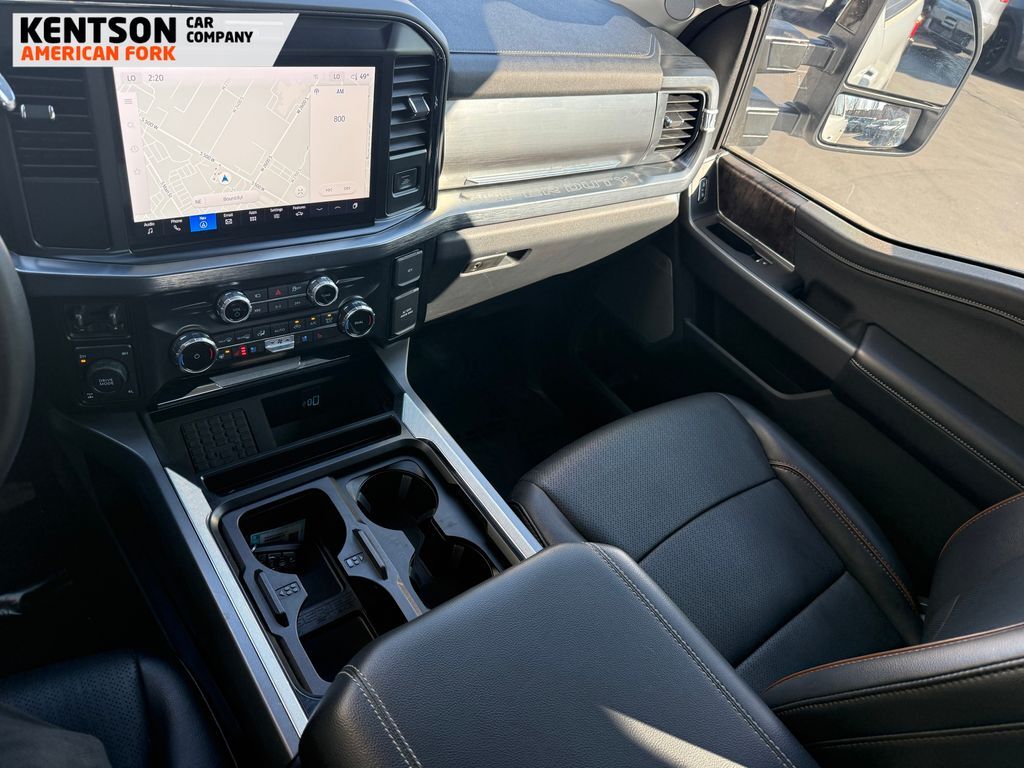 GVWR: F-250 >10K Package, ABS brakes, Alloy wheels, Compass, Electronic Stability Control, Front dual zone A/C, Heated door mirrors, Heated front seats, Heated rear seats, Illuminated entry, Low tire pressure warning, Navigation System, Remote keyless entry, Traction control, 3.73 Axle Ratio, 4-Wheel Disc Brakes, 8 Speakers, Adjustable pedals, Air Conditioning, AM/FM radio: SiriusXM with 360L, Auto High-beam Headlights, Auto-dimming Rear-View mirror, Automatic temperature control, BLIS with Cross-Traffic Alert, Brake assist, Bumpers: chrome, Delay-off headlights, Driver door bin, Driver vanity mirror, Dual front impact airbags, Dual front side impact airbags, Emergency communication system: SYNC 4 911 Assist, Flow-Through Console, Front ActiveX Trimmed 40/Console/40 Seats, Front anti-roll bar, Front Bucket Seats, Front Center Armrest, Front fog lights, Front reading lights, Fully automatic headlights, Garage door transmitter, Heated steering wheel, Internet access capable: FordPass Connect 5G, Memory seat, Outside temperature display, Overhead airbag, Overhead console, Panic alarm, Passenger door bin, Passenger vanity mirror, Pedal memory, Power door mirrors, Power driver seat, Power passenger seat, Power steering, Power windows, Privacy Glass, Radio: B&O Sound System by Bang and Olufsen, Rain sensing wipers, Rear Parking Sensors, Rear reading lights, Rear seat center armrest, Rear step bumper, Rear window defroster, Security system, SiriusXM Radio with 360L, Speed control, Split folding rear seat, Steering wheel mounted audio controls, SYNC 4 with Enhanced Voice Recognition, Tachometer, Telescoping steering wheel, Tilt steering wheel, Trip computer, Turn signal indicator mirrors, Variably intermittent wipers, Ventilated front seats, and Wheels: 18'' Bright Machined and Carbonized Gray Aluminum.