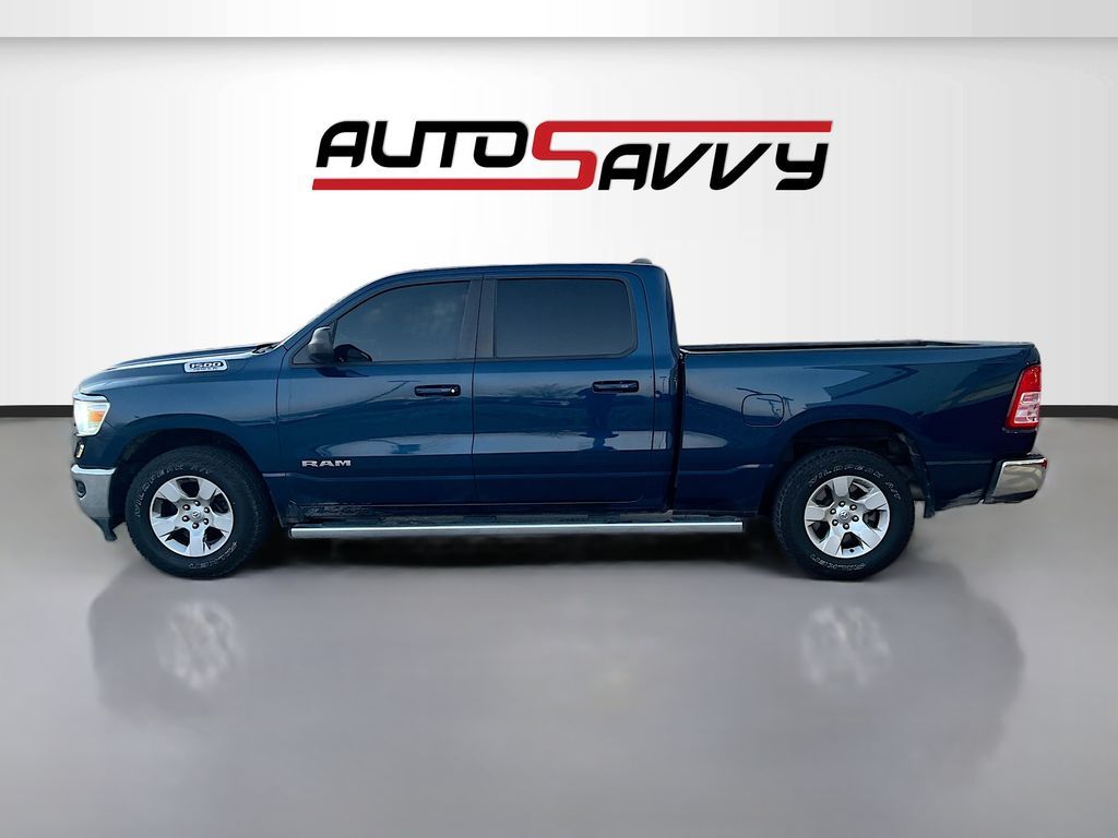 Discover the 2021 RAM 1500 Big Horn Crew Cab 4x4 at AutoSavvy Windsor, a powerhouse of performance and style. This Patriot Blue Pearlcoat beauty, with 66,820 miles, is equipped with a robust HEMI 5.7L V-8 engine, delivering an impressive 395 horsepower with cylinder deactivation for enhanced efficiency. Designed for both power and comfort, this truck offers a smooth ride with its 8-speed automatic transmission and four-wheel drive capability, making it perfect for any terrain. Enjoy the convenience of a spacious Crew Cab with premium features like a ParkView Rear Back-Up Camera, integrated Uconnect with Bluetooth, and a 5-inch touchscreen display. The Diesel Gray/Black cloth interior provides a comfortable and stylish driving experience, complemented by handy features like keyless entry and start, and multiple USB ports for all your connectivity needs. The current status of the title is branded, reflecting AutoSavvy Windsor's commitment to transparency and quality. This RAM 1500 has undergone a meticulous inspection to meet high safety and performance standards, ensuring reliability and excellence. As a Savvy Certified vehicle, it includes a 4-month/4,500-mile warranty, offering additional peace of mind about its superior condition. Visit AutoSavvy Windsor today to explore this exceptional vehicle and discover why the 2021 RAM 1500 Big Horn Crew Cab 4x4 is the perfect choice for those seeking a blend of power, technology, and reliability. Whether you're hauling equipment or heading out on a weekend adventure, this RAM is designed to deliver an unparalleled driving experience.