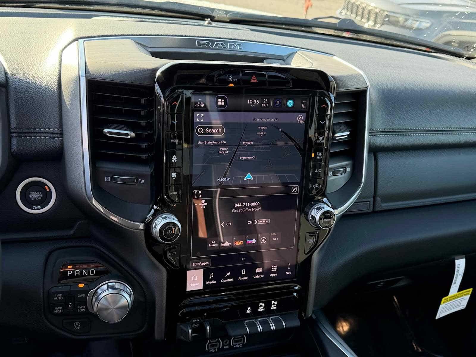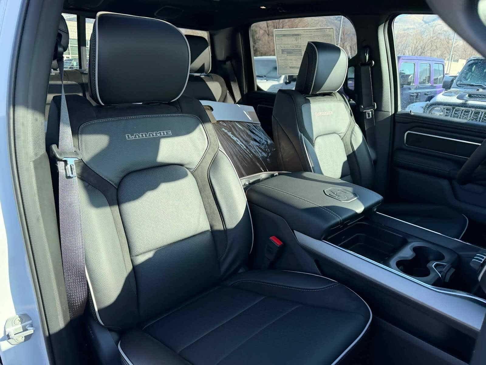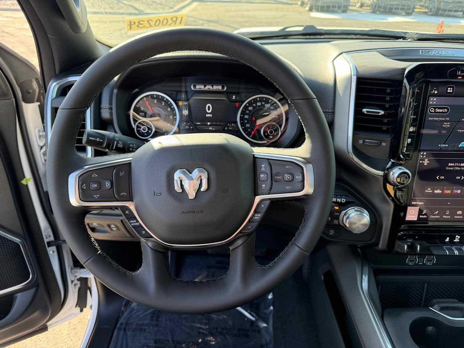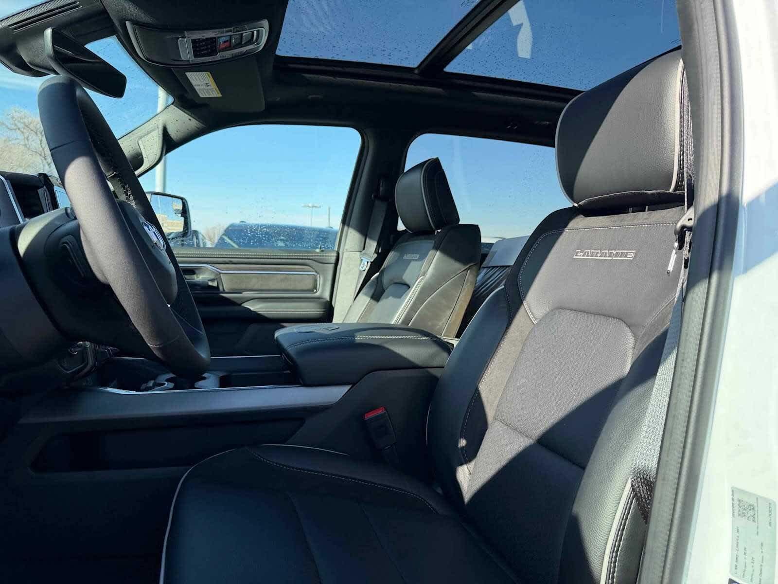 Leather Seats, Navigation, 4x4, Heated Driver Seat, Heated Rear Seat, Cooled Driver Seat, Back-Up Camera, Turbocharged, Premium Sound System, Satellite Radio. MP3 Player, Keyless Entry, Privacy Glass, Steering Wheel Controls. Ram Laramie with Bright White Clearcoat exterior and Black interior features a 8 Cylinder Engine with 395 HP at 5600 RPM*.