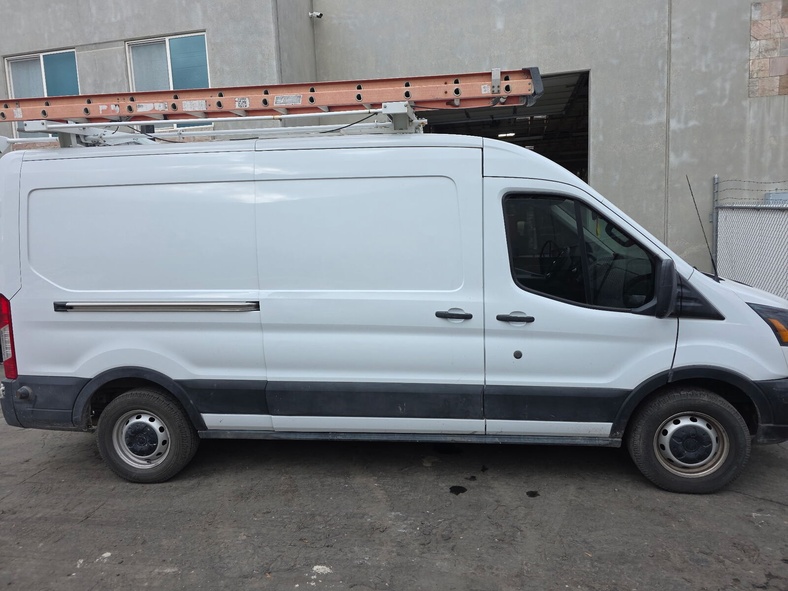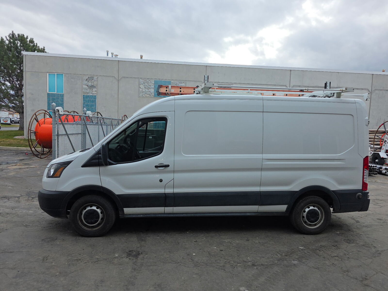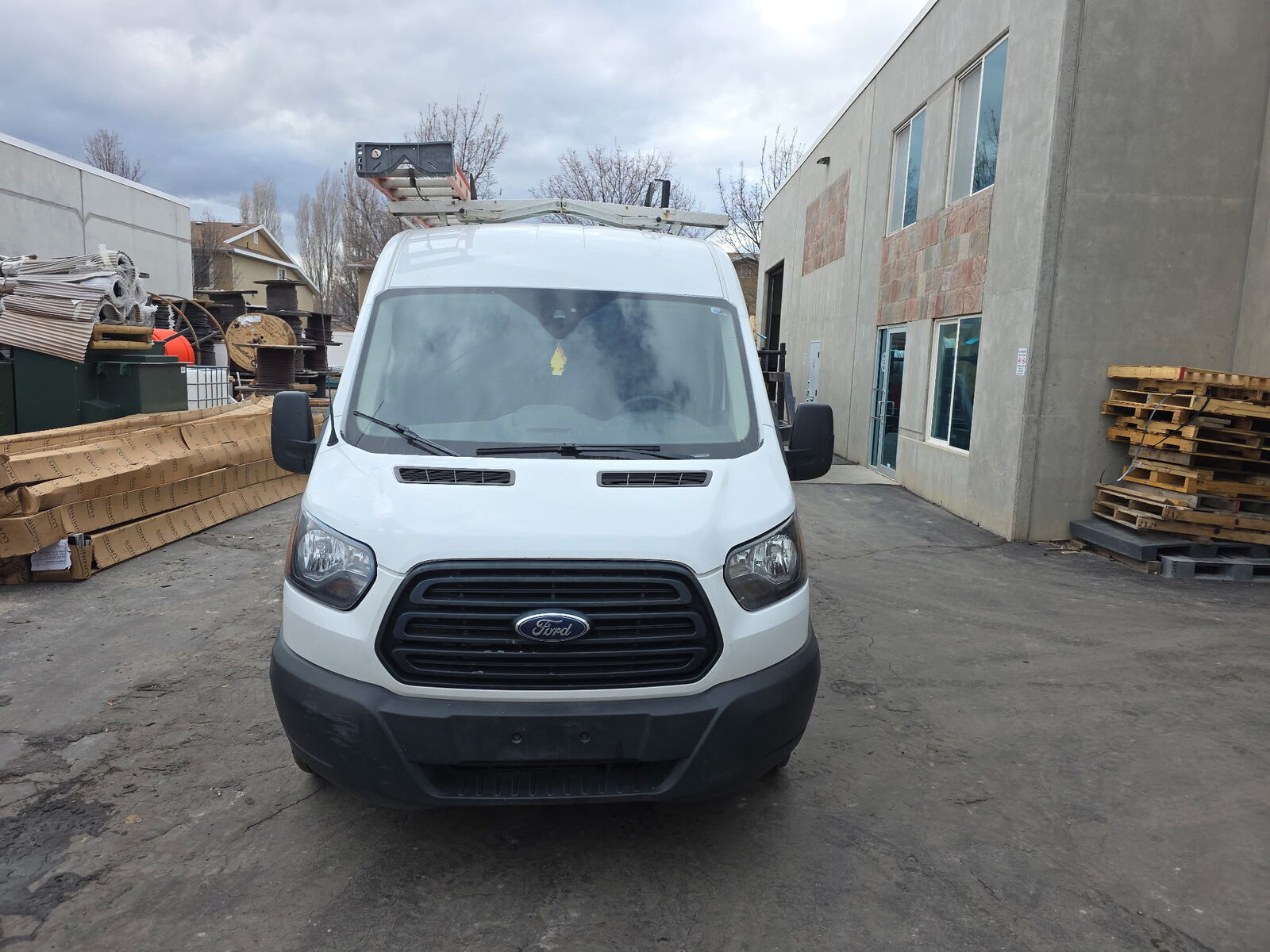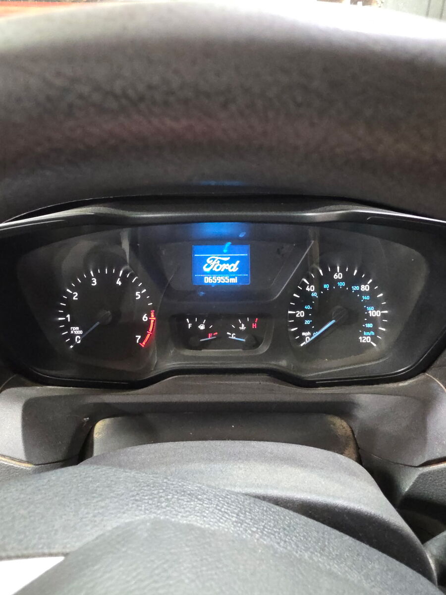 Work bins and headache racks are installed inside van.