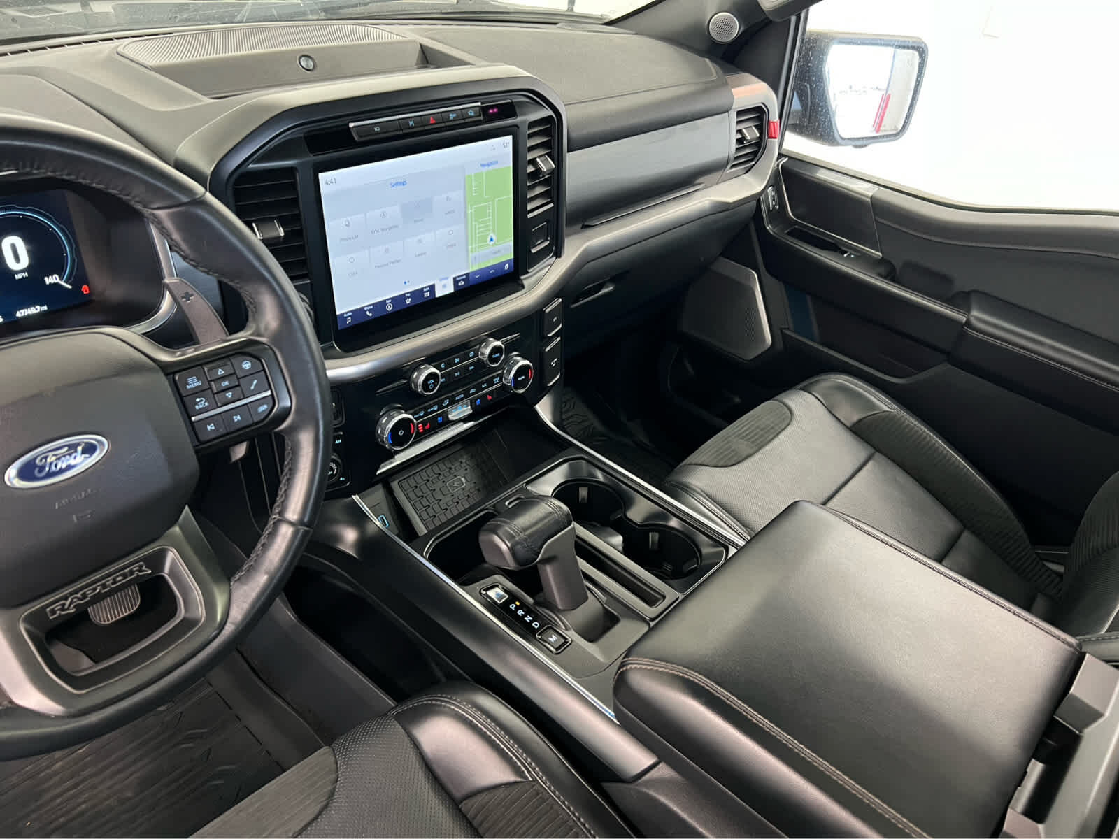 Leather Seats, Navigation, Heated Driver Seat, Heated Rear Seat, Cooled Driver Seat, Back-Up Camera, Running Boards, Premium Sound System MP3 Player, Privacy Glass, Keyless Entry, Child Safety Locks. Ford Raptor with Agate Black Metallic exterior and Black interior features a V6 Cylinder Engine with 450 HP at 5000 RPM*.