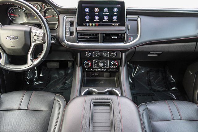 LPO MOLDED SPLASH GUARDS (dealer-installed),WHEELS 22 X 9 (55.9 CM X 22.9 CM) BRIGHT MACHINED HIGH-GLOSS BLACK PAINTED (Includes (SFE) wheel locks LPO.) (STD),AUDIO SYSTEM CHEVROLET INFOTAINMENT 3 PLUS SYSTEM 10.2 DIAGONAL HD COLOR TOUCHSCREEN AM/FM stereo Bluetooth audio streaming for 2 active devices Apple CarPlay and Android Auto capable enhanced voice recognition in-vehicle apps cloud connected personalization for select infotainment and vehicle settings. Subscription required for enhanced and connected services after trial period. (STD),JET BLACK/VICTORY RED PERFORATED LEATHER SEATING SURFACES 1ST AND 2ND ROW,BUILDABLE ORDER CONFIRMATION,REAR AXLE 3.23 RATIO,TRANSMISSION 10-SPEED AUTOMATIC electronically controlled with overdrive includes Traction Select System including tow/haul (Most vehicles built on or after 6-7-2021 with a V8 engine will have (NSS) Not Equipped with Automatic Stop/Start which removes Automatic Stop/Start Engine control stop/start disable button and its content.) (STD),BLACK,RST PREFERRED EQUIPMENT GROUP includes standard equipment,LPO ALL-WEATHER FLOOR LINERS 1ST AND 2ND ROWS (dealer-installed),GVWR 7500 LBS. (3402 KG) (STD),SEATS FRONT BUCKET (STD),ENGINE 5.3L ECOTEC3 V8 with Dynamic Fuel Management Direct Injection and Variable Valve Timing includes aluminum block construction (355 hp [265 kW] @ 5600 rpm 383 lb-ft of torque [518 Nm] @ 4100 rpm) (STD),Locking/Limited Slip Differential,Four Wheel Drive,Tow Hitch,Power Steering,ABS,4-Wheel Disc Brakes,Aluminum Wheels,Wheel Locks,Tires - Front Performance,Tires - Rear Performance,Conventional Spare Tire,Wheel Locks,Conventional Spare Tire,Luggage Rack,Running Boards/Side Steps,Automatic Highbeams,Heated Mirrors,Power Mirror(s),Privacy Glass,Intermittent Wipers,Variable Speed Intermittent Wipers,Rain Sensing Wipers,Intermittent Wipers,Remote Trunk Release,Power Liftgate,AM/FM Stereo,MP3 Capability,Bluetooth Connection,Auxiliary Audio Input,Smart Device Integration,Premium Sound System,MP3 Capability,Bluetooth Connection,Auxiliary Audio Input,Satellite Radio,Requires Subscription,HD Radio,Bluetooth Connection,Bluetooth Connection,Smart Device Integration,WiFi Hotspot,Bucket Seats,Immobilizer,Keyless Start,Leather Seats,Power Driver Seat,Power Passenger Seat,Driver Adjustable Lumbar,Passenger Adjustable Lumbar,Heated Front Seat(s),Pass-Through Rear Seat,Rear Bench Seat,3rd Row Seat,Floor Mats,Adjustable Steering Wheel,Leather Steering Wheel,Cruise Control,Steering Wheel Audio Controls,Front Collision Warning,Power Door Locks,Keyless Entry,Power Door Locks,Remote Engine Start,Cruise Control,Universal Garage Door Opener,Security System,MP3 Capability,Auxiliary Audio Input,MP3 Capability,Auxiliary Audio Input,Power Windows,Power Windows,Power Windows,Seat Memory,Climate Control,Multi-Zone A/C,A/C,Rear A/C,A/C,Rear A/C,Rear Defrost,Auto-Dimming Rearview Mirror,Driver Vanity Mirror,Passenger Vanity Mirror,Driver Illuminated Vanity Mirror,Passenger Illuminated Visor Mirror,Front Collision Mitigation,Front Collision Warning,Traction Control,Stability Control,Brake Assist,Daytime Running Lights,Driver Restriction Features,Driver Air Bag,Passenger Air Bag,Front Side Air Bag,Front Head Air Bag,Rear Head Air Bag,Passenger Air Bag Sensor,Telematics,Requires Subscription,Rear Parking Aid,Back-Up Camera,Front Collision Mitigation,Front Collision Warning,Child Safety Locks,Tire Pressure Monitor