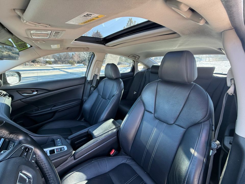 Bluetooth Wireless,F&R Head Curtain Air Bags,Heated Seats,Single-Speed Fixed Gear,Blind-Spot Monitor,Power Steering,Moon Roof,Leather,Hill Start Assist,Alloy Wheels,Dual Air Bags,SiriusXM Satellite,Traction Control,Daytime Running Lights,FWD,Alarm System,Navigation System,Adaptive Cruise Control,Dual Power Seats,Vehicle Stability Assist,AM/FM/HD Radio,Side Air Bags,4-Cyl Hybrid 1.5 Liter,ABS (4-Wheel),Keyless Entry,Fog Lights,Lane Departure Warning System,LED Headlamps,Backup Camera,HondaLink,Power Windows,Air Conditioning,Tilt & Telescoping Wheel,Power Door Locks,Push Button Start