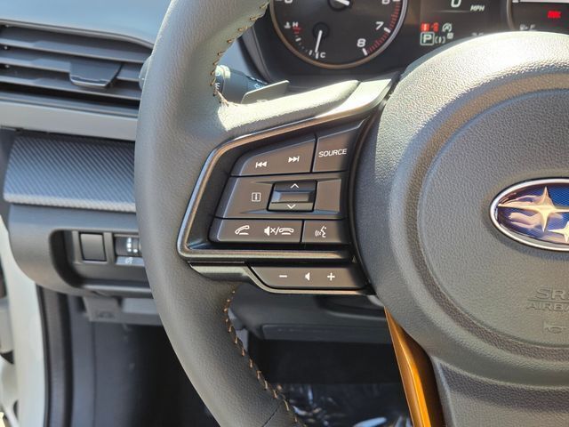 Exterior@Active grille shutters~Exterior@Daytime running lights~Exterior@Door handle color (body-color)~Exterior@Exhaust tip color (stainless steel)~Exterior@Exterior entry lights (approach lamps)~Exterior@Fender lip moldings (black)~Exterior@Front bumper color (black)~Exterior@Front fog lights (LED)~Exterior@Front wipers (variable intermittent)~Exterior@Grille color (black)~Exterior@Headlights (LED)~Exterior@Headlights (auto delay off)~Exterior@Headlights (auto high beam dimmer)~Exterior@Headlights (auto on/off)~Exterior@Headlights (cornering)~Exterior@Headlights (self-leveling)~Exterior@Headlights (wiper activated)~Exterior@Heated windshield wiper rests~Exterior@Laminated glass (acoustic windshield)~Exterior@Liftgate window (fixed)~Exterior@Mirror color (black)~Exterior@Power windows (safety reverse)~Exterior@Rear bumper color (black)~Exterior@Rear privacy glass~Exterior@Rear spoiler (roofline)~Exterior@Rear spoiler color (body-color)~Exterior@Rear trunk/liftgate (liftgate)~Exterior@Rear wiper (auto-on in reverse)~Exterior@Rear wiper (intermittent)~Exterior@Rear wiper (with washer)~Exterior@Rocker panel color (black)~Exterior@Roof rails (black)~Exterior@Side mirror adjustments (manual folding)~Exterior@Side mirror adjustments (power)~Exterior@Side mirrors (heated)~Exterior@Side mirrors (integrated turn signals)~Exterior@Window defogger (rear)~Exterior@Window trim (black)~Interior@Adaptive cruise control~Interior@Adaptive stop and go cruise control (semi-automatic)~Interior@Air filtration~Interior@Airbag deactivation (occupant sensing passenger)~Interior@Antenna type (diversity)~Interior@Antenna type (element)~Interior@Antenna type (mast)~Interior@Armrests (rear center with cupholders)~Interior@Armrests (rear folding)~Interior@Assist handle (front)~Interior@Assist handle (rear)~Interior@Autonomous lane guidance (lane centering)~Interior@Auxiliary audio input (Bluetooth)~Interior@Auxiliary audio input (USB)~Interior@Auxiliary audio input (iPod/iPhone)~Interior@Auxiliary audio input (jack)~Interior@Cargo area floor mat (rubber/vinyl)~Interior@Cargo area light~Interior@Cargo cover (retractable)~Interior@Center console (front console with armrest and storage)~Interior@Center console (illuminated)~Interior@Center console (organizer tray)~Interior@Center console trim (leatherette)~Interior@Connected in-car apps (Google POIs)~Interior@Connected in-car apps (Google search)~Interior@Connected in-car apps (SiriusXM Travel Link)~Interior@Connected in-car apps (Yelp)~Interior@Cupholders (front)~Interior@Cupholders (rear)~Interior@Dash trim (simulated carbon fiber)~Interior@Door trim (leatherette)~Interior@Door trim (metallic)~Interior@Driver assistance app (roadside assistance)~Interior@Driver seat (heated)~Interior@Driver seat manual adjustments (6)~Interior@Driver seat manual adjustments (height)~Interior@Driver seat manual adjustments (reclining)~Interior@Electronic messaging assistance (voice operated)~Interior@Electronic messaging assistance (with read function)~Interior@Floor mat material (rubber/vinyl)~Interior@Floor material (rubber/vinyl)~Interior@Floor mats (front)~Interior@Floor mats (rear)~Interior@Front air conditioning (automatic climate control)~Interior@Front air conditioning zones (dual)~Interior@Front airbags (dual)~Interior@Front headrests (2)~Interior@Front headrests (adjustable)~Interior@Front seat type (bucket)~Interior@Hands-free phone call integration (voice operated)~Interior@Heated steering wheel~Interior@Infotainment (Subaru Infotainment System)~Interior@Infotainment screen size (11.6 in.)~Interior@Internet radio app (AHA)~Interior@Internet radio app (iHeartRadio)~Interior@Knee airbags (driver)~Interior@Multi-function remote (keyless entry)~Interior@Multi-function remote (panic alarm)~Interior@Multi-function remote (trunk release)~Interior@One-touch windows (2)~Interior@Overhead console (front)~Interior@Passenger seat (heated)~Interior@Passenger seat manual adjustments (4)~Interior@Passenger seat manual adjustments (reclining)~Interior@Power outlet(s) (USB front)~Interior@Power outlet(s) (USB rear)~Interior@Power outlet(s) (USB-C front)~Interior@Power outlet(s) (USB-C rear)~Interior@Power outlet(s) (two 12V front)~Interior@Power steering (variable/speed-proportional)~Interior@Power windows (lockout button)~Interior@Push-button start~Interior@Radio (AM/FM)~Interior@Radio (HD radio)~Interior@Radio (touch screen display)~Interior@Radio (voice operated)~Interior@Radio data system~Interior@Reading lights (front)~Interior@Reading lights (rear)~Interior@Rear headrests (3)~Interior@Rear headrests (adjustable)~Interior@Rear seat folding (split)~Interior@Rear seat type (60-40 split bench)~Interior@Rearview mirror (manual day/night)~Interior@Satellite radio (SiriusXM)~Interior@Seat cushion airbags (passenger front)~Interior@Shift knob trim (leather)~Interior@Side airbags (front)~Interior@Side airbags (rear)~Interior@Side curtain airbags (front)~Interior@Side curtain airbags (rear)~Interior@Smart device app compatibility (MySubaru)~Interior@Smart device app function (engine start)~Interior@Smart device app function (horn/light operation)~Interior@Smart device app function (lock operation)~Interior@Smart device app function (maintenance scheduling)~Interior@Smart device app function (maintenance status)~Interior@Smart device app function (security event/collision alert)~Interior@Smart device app function (vehicle location)~Interior@Smartphone integration (wireless Android Auto)~Interior@Smartphone integration (wireless Apple CarPlay)~Interior@Speed sensitive volume control~Interior@Steering wheel (tilt and telescopic)~Interior@Steering wheel mounted controls (audio)~Interior@Steering wheel mounted controls (cruise control)~Interior@Steering wheel mounted controls (multi-function)~Interior@Steering wheel mounted controls (paddle shifter)~Interior@Steering wheel mounted controls (phone)~Interior@Steering wheel mounted controls (voice control)~Interior@Steering wheel trim (leather)~Inter