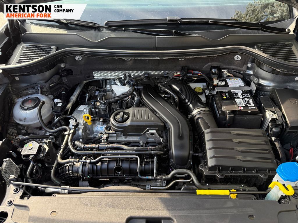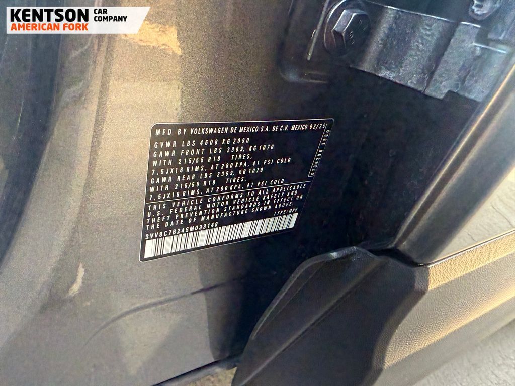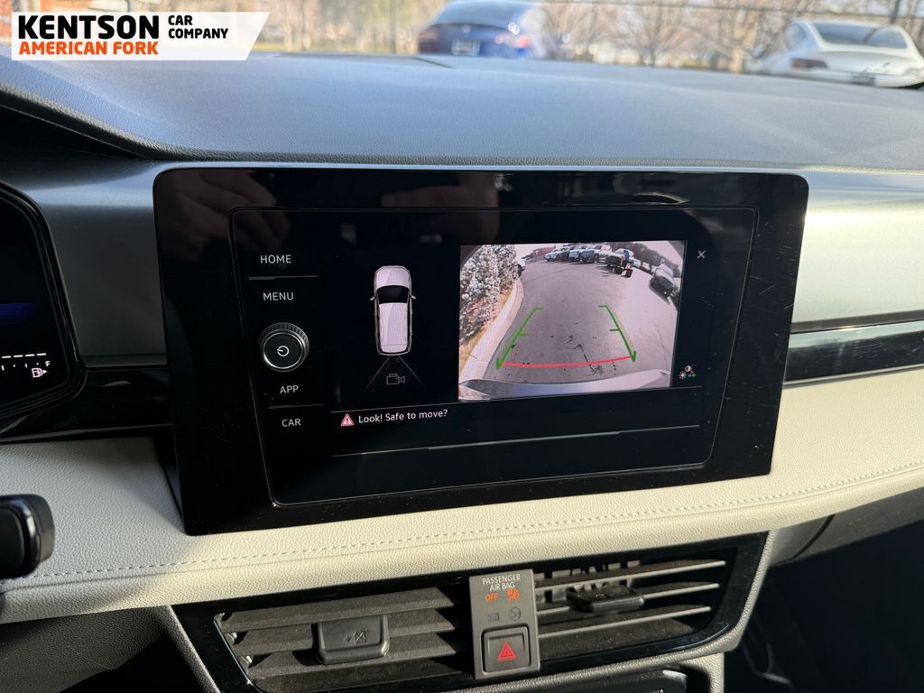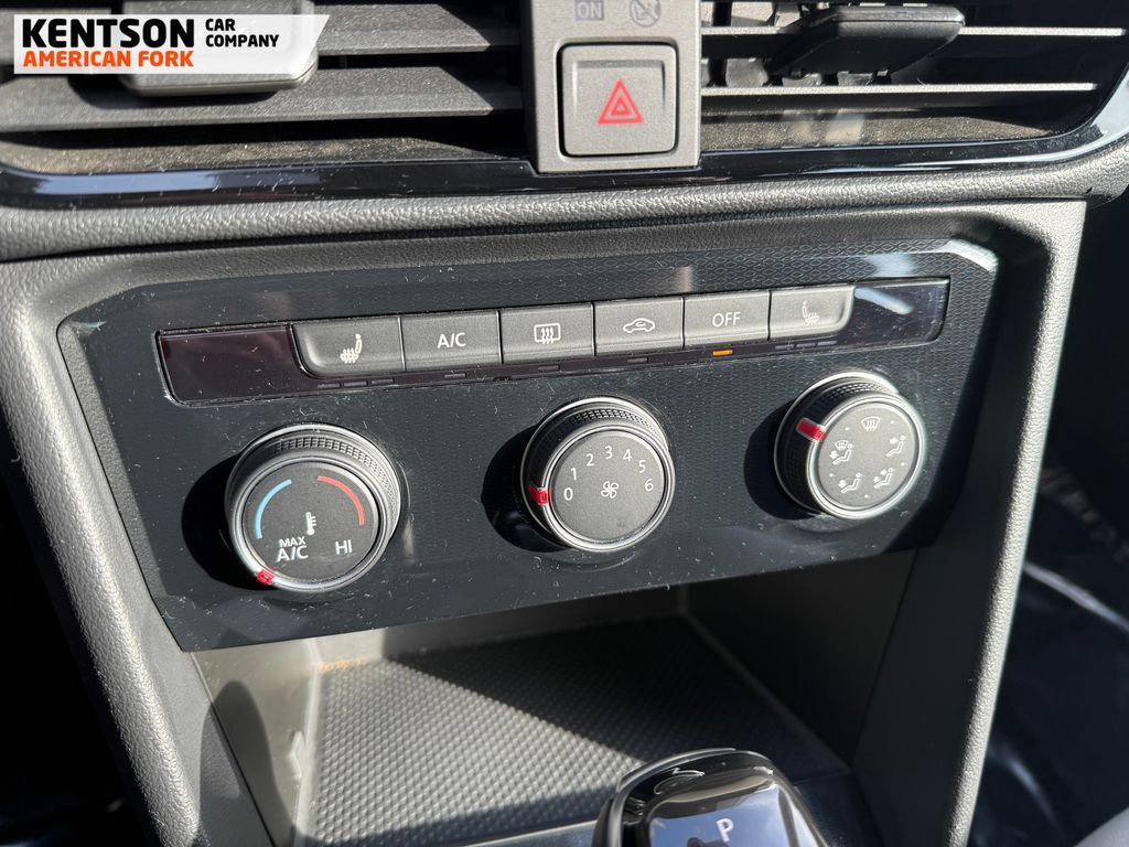 4-Wheel Disc Brakes, 6 Speakers, ABS brakes, Active Blind Spot Monitor, Air Conditioning, Alloy wheels, AM/FM radio, Auto High-beam Headlights, Brake assist, Bumpers: body-color, Cloth Seating Surfaces, Compass, Delay-off headlights, Driver door bin, Driver vanity mirror, Dual front impact airbags, Dual front side impact airbags, Electronic Stability Control, Emergency communication system: VW Car-Net Safe & Secure 5-year, Exterior Parking Camera Rear, Four wheel independent suspension, Front anti-roll bar, Front Bucket Seats, Front Center Armrest, Front reading lights, Front Strut Rear Multi-Link Suspension, Fully automatic headlights, Heated door mirrors, Heated Front Bucket Seats, Heated front seats, Heated steering wheel, Illuminated entry, Leather Shift Knob, Low tire pressure warning, Occupant sensing airbag, Outside temperature display, Overhead airbag, Overhead console, Panic alarm, Passenger door bin, Passenger vanity mirror, Power door mirrors, Power steering, Power windows, Radio data system, Radio: MIB3 Composition Color AM/FM, Rain sensing wipers, Rear anti-roll bar, Rear seat center armrest, Rear window defroster, Rear window wiper, Remote keyless entry, Speed control, Speed-sensing steering, Split folding rear seat, Spoiler, Steering wheel mounted audio controls, Tachometer, Telescoping steering wheel, Tilt steering wheel, Traction control, Trip computer, Variably intermittent wipers, and Wheels: 18'' 2-Tone Machined Alloy.