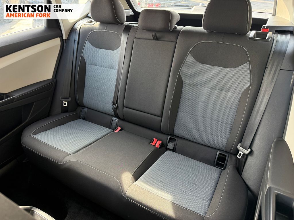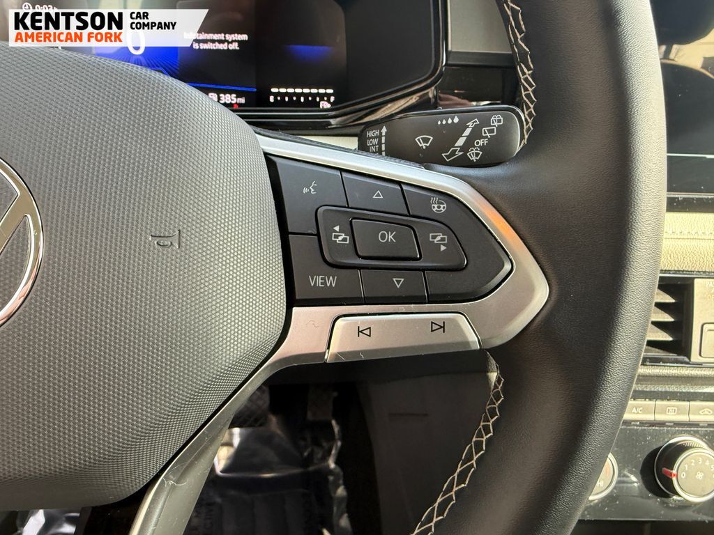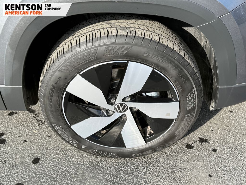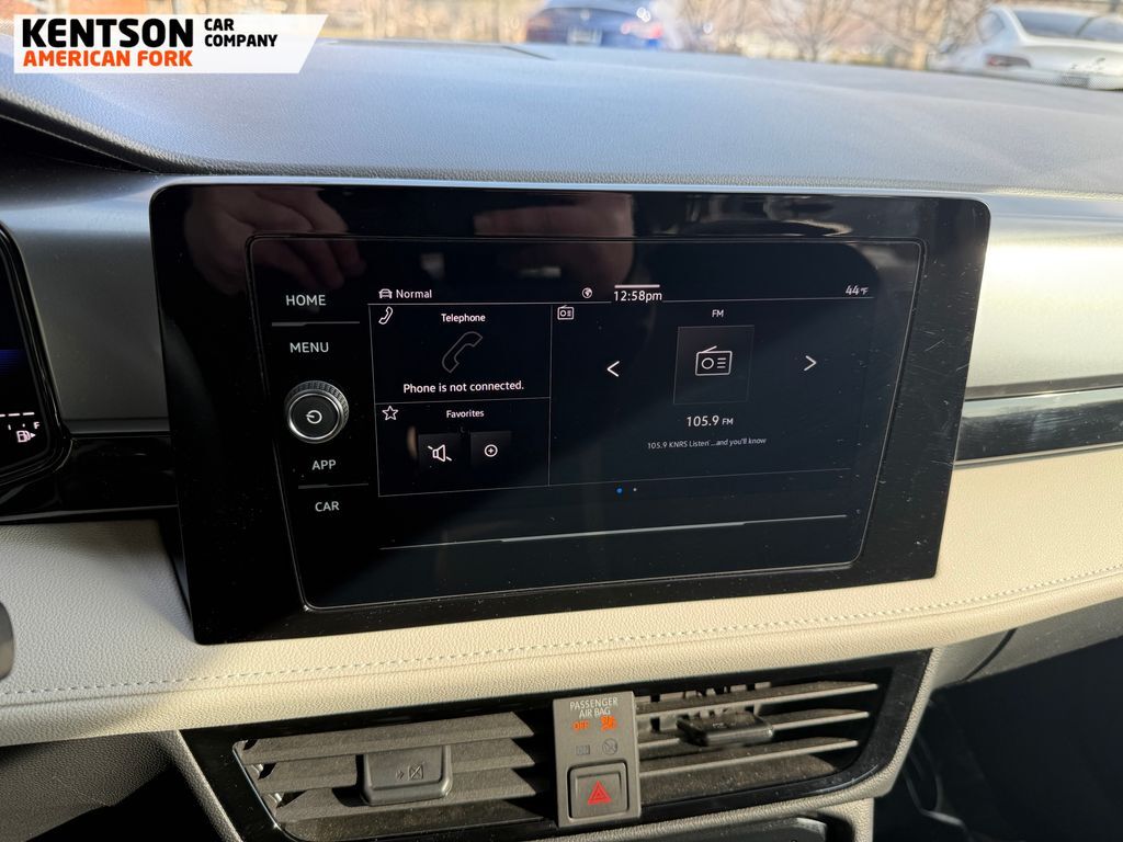 4-Wheel Disc Brakes, 6 Speakers, ABS brakes, Active Blind Spot Monitor, Air Conditioning, Alloy wheels, AM/FM radio, Auto High-beam Headlights, Brake assist, Bumpers: body-color, Cloth Seating Surfaces, Compass, Delay-off headlights, Driver door bin, Driver vanity mirror, Dual front impact airbags, Dual front side impact airbags, Electronic Stability Control, Emergency communication system: VW Car-Net Safe & Secure 5-year, Exterior Parking Camera Rear, Four wheel independent suspension, Front anti-roll bar, Front Bucket Seats, Front Center Armrest, Front reading lights, Front Strut Rear Multi-Link Suspension, Fully automatic headlights, Heated door mirrors, Heated Front Bucket Seats, Heated front seats, Heated steering wheel, Illuminated entry, Leather Shift Knob, Low tire pressure warning, Occupant sensing airbag, Outside temperature display, Overhead airbag, Overhead console, Panic alarm, Passenger door bin, Passenger vanity mirror, Power door mirrors, Power steering, Power windows, Radio data system, Radio: MIB3 Composition Color AM/FM, Rain sensing wipers, Rear anti-roll bar, Rear seat center armrest, Rear window defroster, Rear window wiper, Remote keyless entry, Speed control, Speed-sensing steering, Split folding rear seat, Spoiler, Steering wheel mounted audio controls, Tachometer, Telescoping steering wheel, Tilt steering wheel, Traction control, Trip computer, Variably intermittent wipers, and Wheels: 18'' 2-Tone Machined Alloy.
