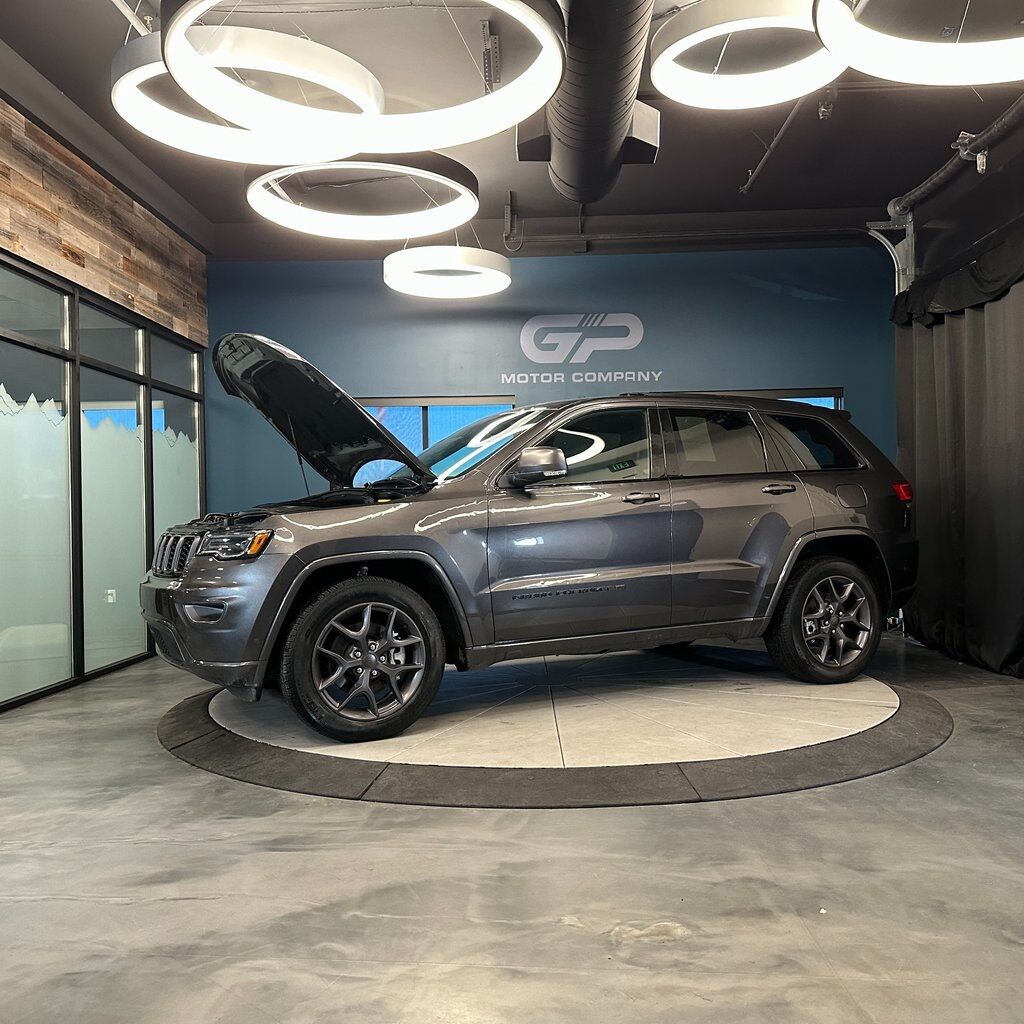No accident history, low miles, 4WD! 80th Anniversary Edition with heated front and second row seats, power liftgate, dual-pane panoramic sunroof, heated steering wheel, Apple CarPlay/Android Auto, and much more! 2021 Jeep Grand Cherokee 80th Anniversary Edition 4WD with branded title from hail, 8-Speed Automatic 3.6L V6 24V VVT