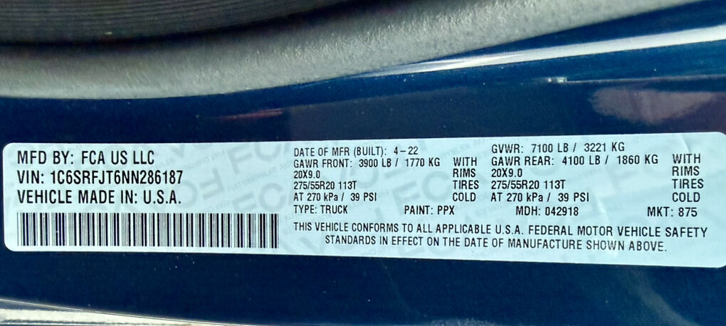 Clean title. One owner. 2022 RAM 1500 4WD 5.7L V8