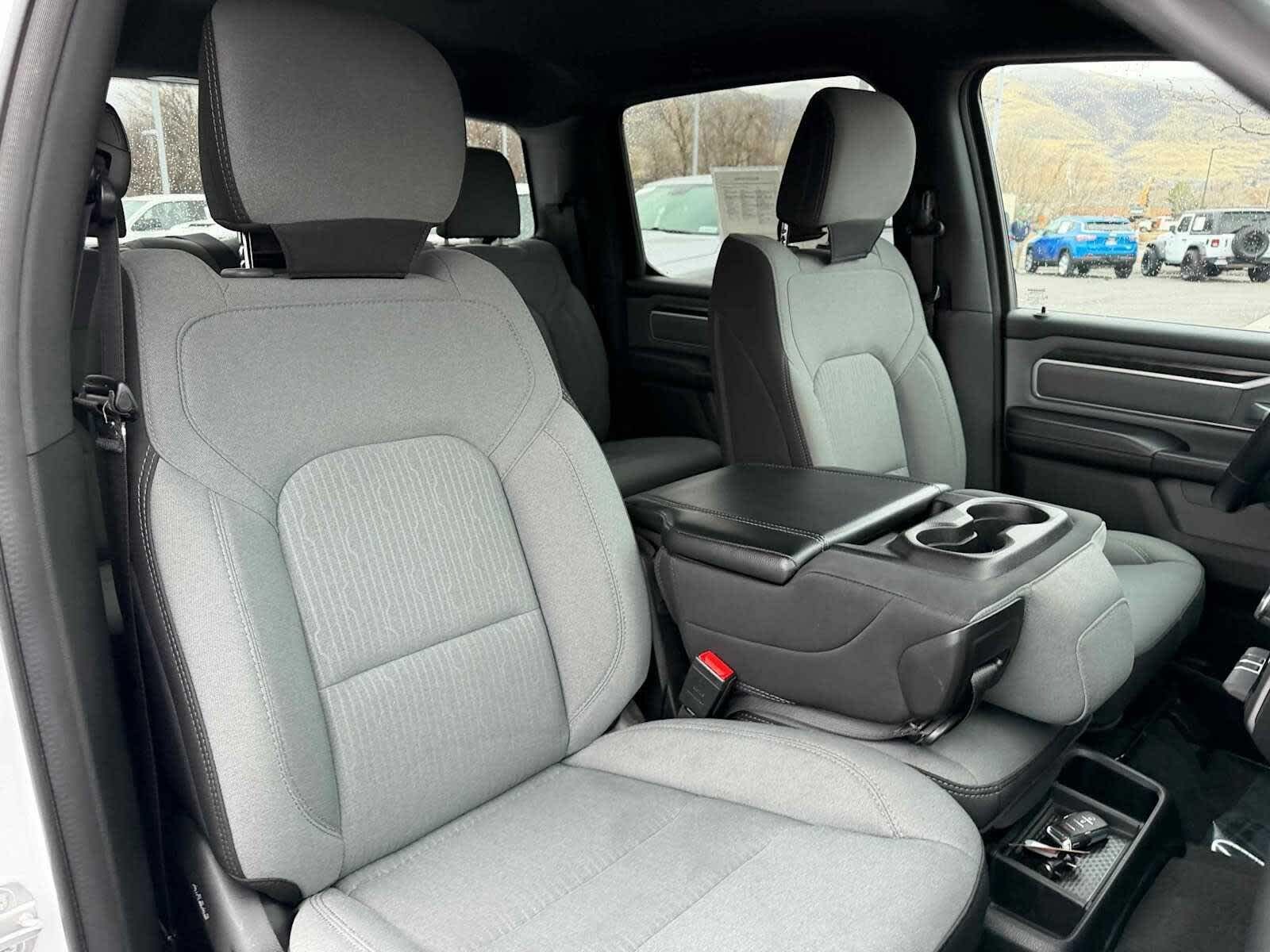 Child Safety Locks, Electronic Stability Control, Brake Assist, 4-Wheel ABS, 4-Wheel Disc Brakes, Tire Pressure Monitoring System Safety equipment includes Child Safety Locks Ram Big Horn with Bright White Clearcoat exterior and Diesel Gray/Black interior features a V6 Cylinder Engine with 305 HP at 6400 RPM*.