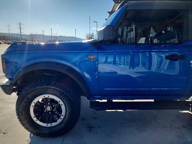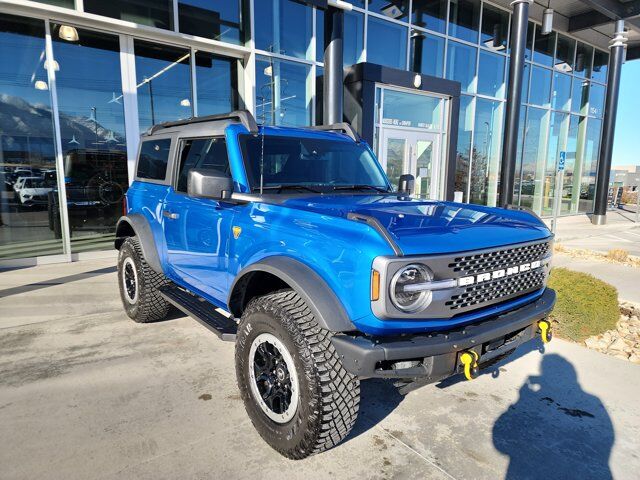 CARFAX One-Owner.Odometer is 2633 miles below market average!Mercedes-Benz of Draper proudly offers this 2024 Blue Metallic Ford Bronco Badlands 4WD . It is well equipped and includes these features and benefits: Equipment Group 332A Mid Package (2-Door Intelligent Access w/Lock/Unlock, Ambient Footwell Lighting, Auto-Dimming Interior Rear-View Mirror, Connected Navigation, Dr & Pass Illuminated Sliding Visor Vanity Mirrors, Dual Smart Charging USB Ports, Dual-Zone Electronic Automatic Temperature Control, Front Row Heated Seats, Power Outlet - Back Side of Center Floor Console, and Rear Parking Sensors), Sasquatch Package (High Clearance Fender Flares, High Clearance Suspension, Position-Sensitive Bilstein Shock Absorbers, and Wheels: 17 Black High Gloss-Painted Aluminum), 4-Wheel Disc Brakes, 7 Speakers, ABS brakes, Air Conditioning, Alloy wheels, AM/FM radio: SiriusXM with 360L, AM/FM Stereo, Auto High-Beam Headlamps, Auto High-beam Headlights, Black Roof Rails w/Crossbars, BLIS Blind Spot Information System, Brake assist, Compass, Convertible HardTop, Convertible roof lining, Delay-off headlights, Driver door bin, Driver vanity mirror, Dual front impact airbags, Dual front side impact airbags, Electronic Stability Control, Emergency communication system: 911 Assist, Exterior Parking Camera Rear, Front anti-roll bar, Front Bucket Seats, Front Center Armrest, Front License Plate Bracket, Front reading lights, Front wheel independent suspension, Fully automatic headlights, Glass rear window, Heated door mirrors, Illuminated entry, Integrated roll-over protection, Lane-Keeping System, Leather Shift Knob, Low tire pressure warning, Marine Grade Vinyl Bucket Seats, Occupant sensing airbag, Outside temperature display, Overhead airbag, Overhead console, Panic alarm, Passenger door bin, Passenger vanity mirror, Power door mirrors, Power steering, Power windows, Pre-Collision Assist w/Automatic Emergency Braking, Radio data system, Rear window defroster, Rear window wiper, Rear-View Camera, Remote keyless entry, Security system, SiriusXM Radio w/360L, Speed control, Split folding rear seat, Steering wheel mounted audio controls, SYNC 4, Tachometer, Telescoping steering wheel, Tilt steering wheel, Traction control, Trip computer, Variably intermittent wipers, Voltmeter, and Wheels: 17 Machined Carbonized Aluminum. Burmester is a registered trademark of Burmester Audiosysteme GmbH, Berlin, Germany. Bluetooth is a registered Mark of Bluetooth SIG, Inc.Between our welcoming sales team, friendly service center employees and our knowledgeable parts advisors, we have over 250 years of combined Mercedes-Benz experience! All our vehicles go through an extensive reconditioning process which includes all up to date scheduled services by our Mercedes factory trained technicians as well as passing a 155 point inspection, setting us apart from the other dealerships and car lots. We invite you to visit us at Mercedes-Benz of Draper and welcome you to our MB family.