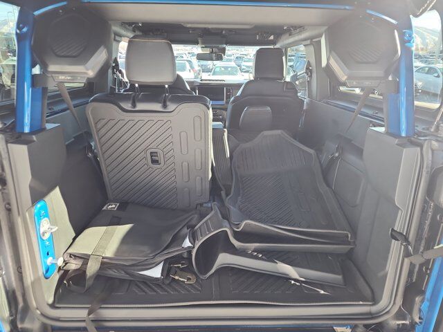 Equipment Group 332A Mid Package,Sasquatch Package,Convertible HardTop,7 Speakers,AM/FM radio: SiriusXM with 360L,AM/FM Stereo,Radio data system,SiriusXM Radio w/360L,SYNC 4,Air Conditioning,Dual-Zone Electronic Automatic Temperature Control,Rear window defroster,Power Outlet - Back Side of Center Floor Console,Power steering,Power windows,Remote keyless entry,Steering wheel mounted audio controls,Position-Sensitive Bilstein Shock Absorbers,Traction control,2-Door Intelligent Access w/Lock/Unlock,4-Wheel Disc Brakes,ABS brakes,Dual front impact airbags,Dual front side impact airbags,Emergency communication system: 911 Assist,Front anti-roll bar,Front wheel independent suspension,Integrated roll-over protection,Low tire pressure warning,Occupant sensing airbag,Overhead airbag,BLIS Blind Spot Information System,Brake assist,Electronic Stability Control,Exterior Parking Camera Rear,Rear Parking Sensors,Rear-View Camera,Auto High-beam Headlights,Delay-off headlights,Fully automatic headlights,Panic alarm,Security system,Speed control,Auto High-Beam Headlamps,Front License Plate Bracket,Heated door mirrors,High Clearance Fender Flares,High Clearance Suspension,Power door mirrors,Ambient Footwell Lighting,Auto-Dimming Interior Rear-View Mirror,Compass,Connected Navigation,Convertible roof lining,Dr & Pass Illuminated Sliding Visor Vanity Mirrors,Driver door bin,Driver vanity mirror,Dual Smart Charging USB Ports,Front reading lights,Illuminated entry,Lane-Keeping System,Leather Shift Knob,Marine Grade Vinyl Bucket Seats,Outside temperature display,Overhead console,Passenger vanity mirror,Pre-Collision Assist w/Automatic Emergency Braking,Tachometer,Telescoping steering wheel,Tilt steering wheel,Trip computer,Voltmeter,Front Bucket Seats,Front Center Armrest,Front Row Heated Seats,Split folding rear seat,Black Roof Rails w/Crossbars,Passenger door bin,Alloy wheels,Wheels: 17 Black High Gloss-Painted Aluminum,Wheels: 17 Machined Carbonized Aluminum,Glass rear window,Rear window wiper,Variably intermittent wipers,Passed Larry H Miller inspection!