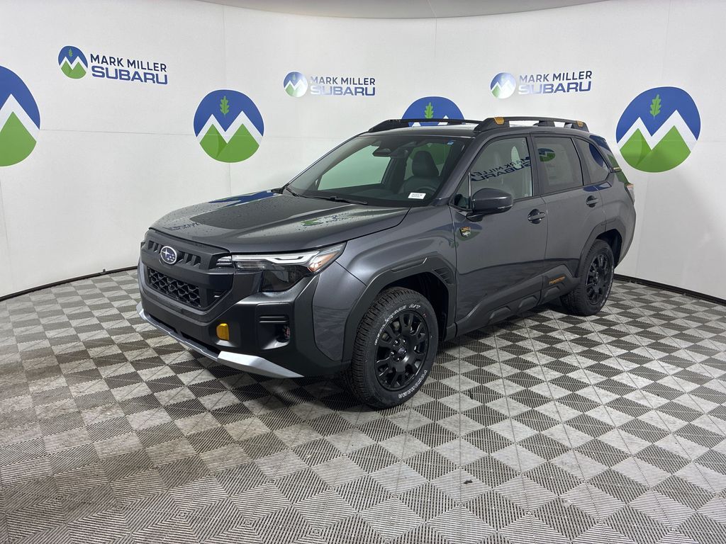Mark Miller Subaru is the leading Subaru dealership in Utah. Our large inventory and dedicated sales teams has made us the go to destination for the Subaru brand in Utah. Our Promise Price is the best way to buy a Subaru in Utah. Come experience the Mark Miller Subaru difference today! ** This 2026 Magnetite Gray Metallic Subaru Forester Wilderness AWD is well equipped and includes these features and benefits: 4-Wheel Disc Brakes, 6 Speakers, ABS brakes, Air Conditioning, Alloy wheels, AM/FM radio: SiriusXM with 360L, Anti-whiplash front head restraints, Auto High-beam Headlights, Automatic temperature control, Brake assist, Bumpers: body-color, Driver door bin, Driver vanity mirror, Dual front impact airbags, Dual front side impact airbags, Electronic Stability Control, Emergency communication system: MySubaru Companion (5-years free), Exterior Parking Camera Rear, Four wheel independent suspension, Front anti-roll bar, Front Bucket Seats, Front Center Armrest, Front dual zone A/C, Front fog lights, Front reading lights, Fully automatic headlights, Heated door mirrors, Heated Front Bucket Seats, Heated front seats, Illuminated entry, Knee airbag, Low tire pressure warning, Occupant sensing airbag, Outside temperature display, Overhead airbag, Overhead console, Panic alarm, Passenger door bin, Passenger vanity mirror, Power door mirrors, Power driver seat, Power moonroof: Panoramic, Power steering, Power windows, Radio data system, Radio: Subaru 11.6'' Multimedia Plus System, Rain sensing wipers, Rear anti-roll bar, Rear seat center armrest, Rear window defroster, Rear window wiper, Remote keyless entry, Security system, Speed control, Speed-sensing steering, Split folding rear seat, Spoiler, Steering wheel mounted audio controls, Tachometer, Telescoping steering wheel, Textured StarTex Upholstery, Tilt steering wheel, Traction control, Trip computer, Turn signal indicator mirrors, Variably intermittent wipers, and Wheels: 17'' x 7.0 J Matte Black Finish Aluminum-Alloy **