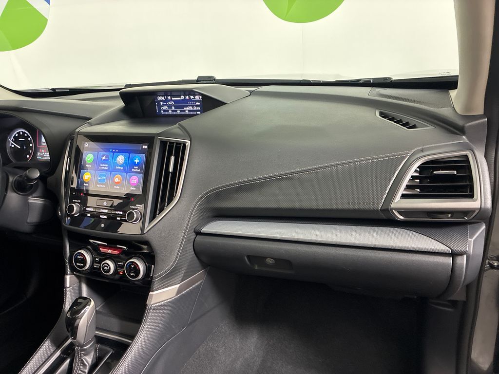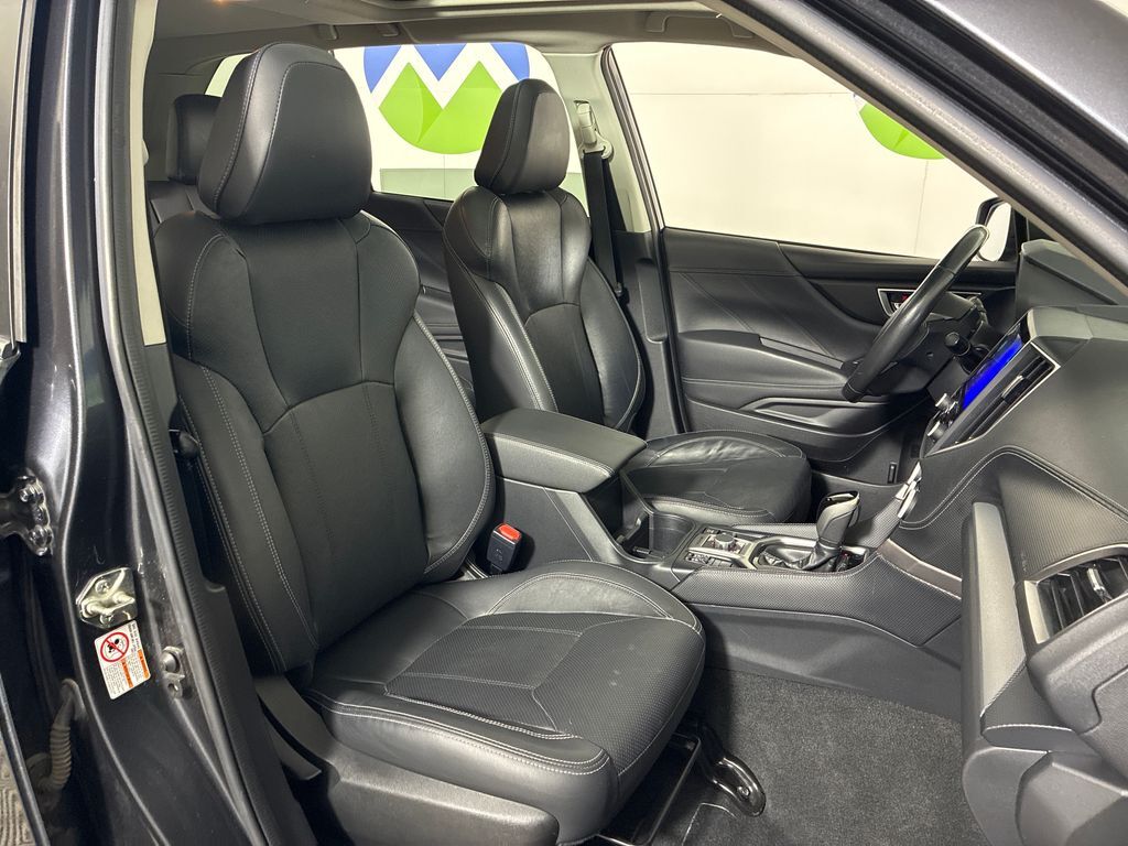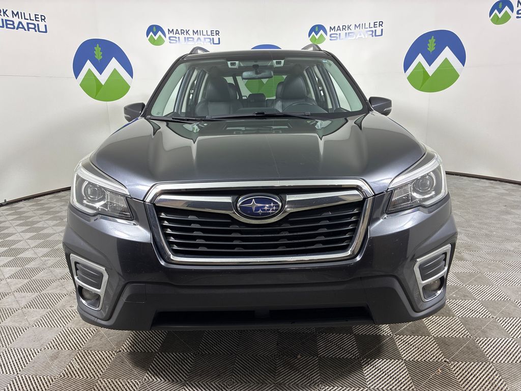 This 2019 Dark Gray Metallic Subaru Forester Limited AWD is well equipped and includes these features and benefits: 3.70 Axle Ratio, 4-Wheel Disc Brakes, 6 Speakers, ABS brakes, Air Conditioning, All-Weather Floor Liners, Alloy wheels, AM/FM radio: SiriusXM, Auto High-beam Headlights, Automatic temperature control, Brake assist, Bumpers: body-color, CD player, Driver door bin, Driver vanity mirror, Dual front impact airbags, Dual front side impact airbags, Electronic Stability Control, Emergency communication system: STARLINK Safety and Security, Exterior Parking Camera Rear, Four wheel independent suspension, Front anti-roll bar, Front Bucket Seats, Front Center Armrest, Front dual zone A/C, Front fog lights, Front reading lights, Fully automatic headlights, Heated door mirrors, Heated Front Bucket Seats, Heated front seats, Illuminated entry, Knee airbag, Leather Shift Knob, Low tire pressure warning, Occupant sensing airbag, Outside temperature display, Overhead airbag, Overhead console, Panic alarm, Passenger door bin, Passenger vanity mirror, Perforated Leather-Trimmed Upholstery, Power door mirrors, Power driver seat, Power Liftgate, Power moonroof: Panoramic, Power steering, Power windows, Radio data system, Radio: Subaru Starlink 8.0'' Multimedia Plus System, Rear anti-roll bar, Rear Bumper Cover, Rear seat center armrest, Rear Seatback Protector, Rear window defroster, Rear window wiper, Remote keyless entry, Roof rack: rails only, Security system, Speed control, Speed-sensing steering, Split folding rear seat, Spoiler, STARLINK/Apple CarPlay/Android Auto, Steering wheel mounted audio controls, Tachometer, Telescoping steering wheel, Tilt steering wheel, Traction control, Trip computer, Turn signal indicator mirrors, Variably intermittent wipers, and Wheels: 18'' x 7.0J Black Machine Finish Alum Alloy.