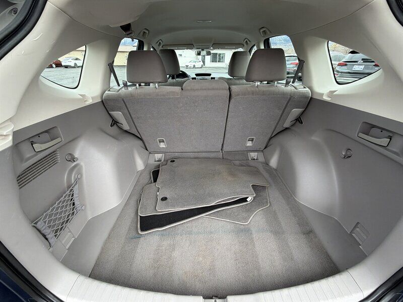 INSTALLED FEATURES: Air filtration, Front air conditioning, Front air conditioning zones: single, Rear vents: second row, Airbag deactivation: occupant sensing passenger, Front airbags: dual, Side airbags: front, Side curtain airbags: front / rear, Antenna type: mast, Auxiliary audio input: Bluetooth / iPod/iPhone / jack / USB, In-Dash CD: MP3 Playback / single disc, Internet radio app: Pandora, Radio: AM/FM, Radio data system, Speed sensitive volume control, Total speakers: 4, Watts: 160, ABS: 4-wheel, Braking assist, Electronic brakeforce distribution, Front brake type: ventilated disc, Power brakes, Rear brake type: disc, Armrests: rear center folding with storage / rear center with cupholders, Floor mat material: carpet, Floor material: carpet, Floor mats: front / rear, Assist handle: front / rear, Cargo area light, Center console: front console with armrest and storage, Conversation mirror, Courtesy lights: door, Cruise control, Cupholders: 8 / front / rear, Multi-function remote: keyless entry, One-touch windows: 1, Overhead console: front, Power outlet(s): two 12V front, Power steering, Power windows: lockout button, Reading lights: front / rear, Rearview mirror: manual day/night, Steering wheel: tilt and telescopic, Steering wheel mounted controls: audio / cruise control / multi-function / phone, Storage: accessory hook / cargo tie-down anchors and hooks / door pockets / sunglasses holder, Vanity mirrors: dual, Door handle color: black, Front bumper color: black, Grille color: chrome, Mirror color: black, Rear bumper color: black, Rear trunk/liftgate: liftgate, Window trim: chrome, Clock, Compass, Digital odometer, External temperature display, Fuel economy display: MPG / range, Gauge: oil pressure / tachometer, Multi-function display, Trip odometer, Warnings and reminders: low fuel level / maintenance due, Daytime running lights, Headlights: auto off / halogen, Side mirror adjustments: manual folding / power, 4WD type: on demand, Active head restraints: dual front, Camera system: rear multi-view, Child safety door locks, Child seat anchors: LATCH system, Crumple zones: front, Rearview monitor: in mirror, Emergency locking retractors: front / rear, Front seatbelts: 3-point, Rear seatbelts: 3-point, Seatbelt force limiters: front, Seatbelt pretensioners: front, Seatbelt warning sensor: front, Driver seat manual adjustments: height, Front headrests: 2 / adjustable, Front seat type: bucket, Passenger seat manual adjustments, Rear headrests: 3 / adjustable, Rear seat folding: split, Rear seat type: 60-40 split bench, Upholstery: cloth, Anti-theft system: vehicle immobilizer, Power door locks: auto-locking, Hill holder control, Stability control, Traction control, Front shock type: twin-tube gas, Front spring type: coil, Front stabilizer bar: diameter 20 mm, Front struts: MacPherson, Front suspension classification: independent, Front suspension type: lower control arms, Rear shock type: twin-tube gas, Rear spring type: coil, Rear stabilizer bar: diameter 19 mm, Rear suspension classification: independent, Rear suspension type: multi-link, Electronic messaging assistance: with read function, Wireless data link: Bluetooth, Spare tire mount location: inside, Spare tire size: temporary, Spare wheel type: steel, Tire Pressure Monitoring System, Wheels: steel, Front wipers: intermittent, Liftgate window: fixed, Power windows, Rear wiper: intermittent / with washer, Window defogger: rear