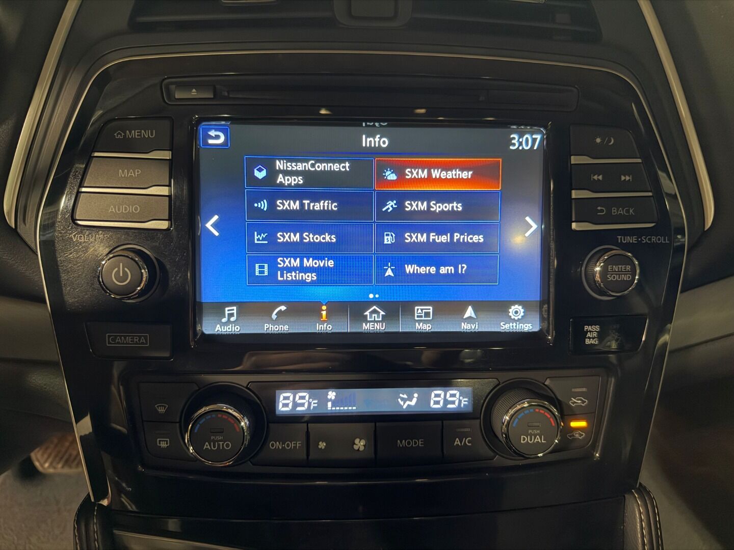 A/C Front,Alloy Wheels,CD Player,Anti-Lock Brakes,Driver Air Bag,Heated Front Seats,Leather Interior,Leather Seats,Power Mirrors,Power Seats,Power Steering,Power Windows,Side Air Bag,Tilt Wheel,Traction Control,MP3 Player,Rear Parking Aid,Chrome Wheels,Backup Camera,Keyless Entry,Bluetooth Capable,Passenger Air Bag,Rear Air Bags,Power Door Locks,Navigation,Cruise Control,AM/FM Stereo,Heat/AC,DVD NAV Sys,Auxiliary Audio Input,Multi-Zone A/C,Steering Wheel Audio Controls,Brake Assist