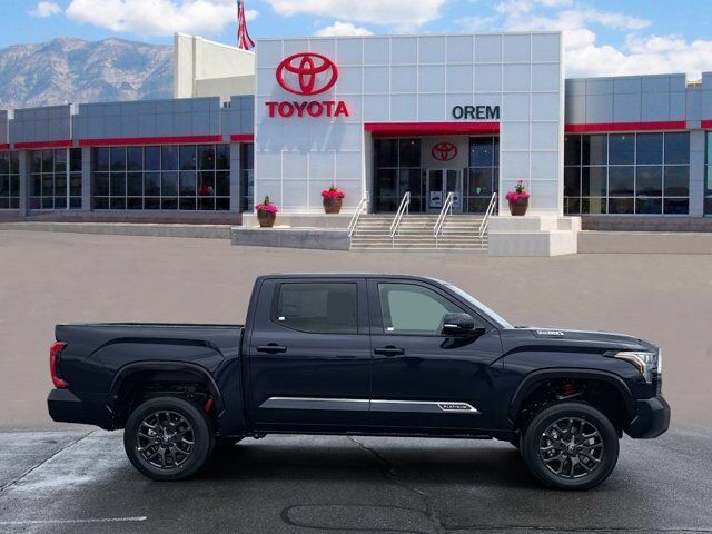 *2.99% APR financing available for up to 72 months on approved credit through Toyota Financial Services on a new 2026 Toyota Tundra and Tundra Hybrid Models (excluding Model 8424). Offer valid from 1/6/2026 Through 3/2/2026. Not all customers will qualify. Offer cannot be combined with certain other offers. See dealer for complete details.Our 2026 Toyota Tundra Platinum CrewMax 4X4 is rugged, refined, and ready for action in Blueprint! Powered by a Twin-TurboCharged 3.4 Liter i-FORCE MAX V6 and an Electric Motor delivering a combined 437hp to a 10 Speed Automatic transmission engineered for hard work. This Four Wheel Drive truck inspires confidence with its responsive suspension, and it sees nearly 23mpg on the highway. Designed to dominate, our Tundra turns heads with a panoramic sunroof, premium LED lighting, fog lamps, a dark chrome grille, gloss black accents, multifunction mirrors, a 120V/400W outlet, and a stamped tailgate with a bump-switch release.Lavish luxury awaits in our Platinum cabin, which features heated/ventilated leather front and rear seats, a heated leather power steering wheel, dual-zone automatic climate control, a power rear window, keyless access/ignition, and a soft-touch instrument panel. A 12.3-inch driver display and 14-inch touchscreen set the stage for digital driving with WiFi compatibility, wireless Apple CarPlay®/Android Auto®, Bluetooth®, wireless charging, and a JBL sound system.Toyota's terrific safety technologies include blind-spot monitoring, front/rear auto braking, adaptive cruise control, lane-keeping assistance, a panoramic view monitor, a digital rearview mirror, and more. Intense and intelligent, our Tundra Platinum helps drivers work hard and play harder! Save this Page and Call for Availability. We Know You Will Enjoy Your Orem Toyota Test Drive Towards Ownership! May not represent actual vehicle. (Options, colors, trim and body style may vary) Excludes tax, tag, title and registration. Purchase offer does not include $499 Doc fee. Vehicle stock images represent trim level only.