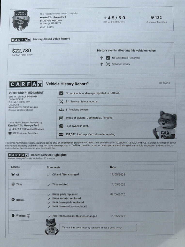 2018 F150 LARIAT - taking offers. Last week to list- (Warranty Included!). Has been well maintained. CREW CAB W/ FX4 OFF-ROAD PKG. LOTS OF UPGRADES INCLUDING LEATHER (HEATED AND VENTILATED) SEATS, PUSH BUTTON START, POWER SLIDING REAR WINDOW, ADAPTIVE CRUISE CONTROL, POWER TAILGATE RELEASE, DUAL POWER SEATS, BACKUP CAMERA, PARKING SENSORS, DUAL/SIDE/F&R HEAD CURTAIN AIRBAGS, BED LINER, HARD COVER, TOWNING PKG, GOOD CONDITION WHEELS, TRANSFERABLE WARRANTY THAT COVERS A LOT!