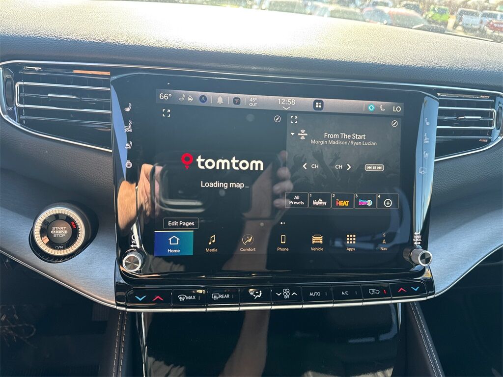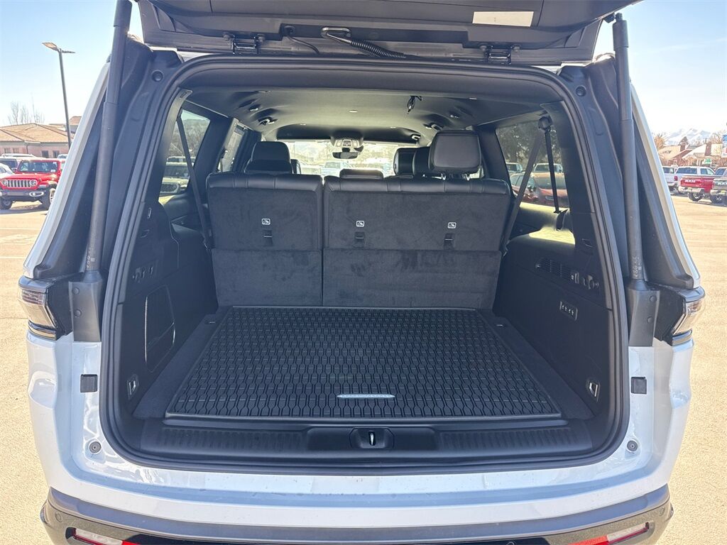 118 MPH Maximum Speed Calibration, 2nd Row Manual Window Shades, 3rd row seats: bench, 4-Wheel Disc Brakes, 9 Speakers, ABS brakes, Adjustable Roof Rail Crossbars, Air Conditioning, All-Season Floor Mats, Alloy wheels, Altitude Appearance Package, AM/FM radio: SiriusXM with 360L, Anti-whiplash front head restraints, Apple CarPlay/Android Auto, Audio memory, Auto Adjust in Reverse Exterior Mirrors, Auto High-beam Headlights, Auto-dimming door mirrors, Auto-Dimming Exterior Driver Mirror, Auto-dimming Rear-View mirror, Auto-leveling suspension, Automatic temperature control, Black Exterior Accents, Blind Spot with Trailer Detection, Brake assist, Bumpers: body-color, Cargo Tray, Compass, Convenience Group I, Delay-off headlights, Driver door bin, Driver vanity mirror, Driver's Seat Mounted Armrest, Dual front impact airbags, Dual front side impact airbags, Elec Rear Limited Slip Differential, Electronic Stability Control, Emergency communication system: Jeep Connect, Exterior Mirrors Approach Lamps, Exterior Mirrors with Memory, Exterior Mirrors with Supplemental Signals, Exterior Parking Camera Rear, Four wheel independent suspension, Front anti-roll bar, Front Bucket Seats, Front Center Armrest w/Storage, Front dual zone A/C, Front fog lights, Front reading lights, Fully automatic headlights, Garage door transmitter, HD Trailer Tow Package, Heated door mirrors, Heated Exterior Mirrors, Heated front seats, Heated rear seats, Heated steering wheel, Illuminated entry, Knee airbag, Leather Trimmed Bucket Seats, Low tire pressure warning, Manufacturer Statement of Origin, Memory seat, MOPAR Interior Protection Package, Navigation System, Normal Duty Suspension, Occupant sensing airbag, Outside temperature display, Overhead airbag, Overhead console, P and P Park and Unpark Assist with Stop System, Panic alarm, Passenger door bin, Passenger seat mounted armrest, Passenger vanity mirror, Power door mirrors, Power driver seat, Power Liftgate, Power passenger seat, Power steering, Power windows, Quadra-Lift Air Suspension, Quick Order Package 29X Altitude, Radio data system, Radio: Uconnect 5 Nav with 12'' Display, Rain sensing wipers, Rear air conditioning, Rear anti-roll bar, Rear reading lights, Rear seat center armrest, Rear window defroster, Rear window wiper, Reclining 3rd row seat, Remote keyless entry, Removable Rear Tow Hooks, Security system, Selec-Speed Control, Semi Active Damping, Side Distance Warning, Smartphone as a Key Prep, Speed control, Speed-sensing steering, Speed-Sensitive Wipers, Split folding rear seat, Steering wheel memory, Steering wheel mounted audio controls, Surround View Camera System, Tachometer, Telescoping steering wheel, Tilt steering wheel, Titanium Daylight Opening Upper, Titanium Upper Grille Applique, Traction control, Trailer Brake Control, Trailer Hitch Zoom, Trailer Light Monitoring, Trip computer, Turn signal indicator mirrors, Vapor Tow Hooks, Variably intermittent wipers, Ventilated front seats, Voltmeter, Wheels: 20'' x 9.0'' Aluminum Painted, Wheels: 20'' x 9.0'' Machine Face Painted Aluminum.
