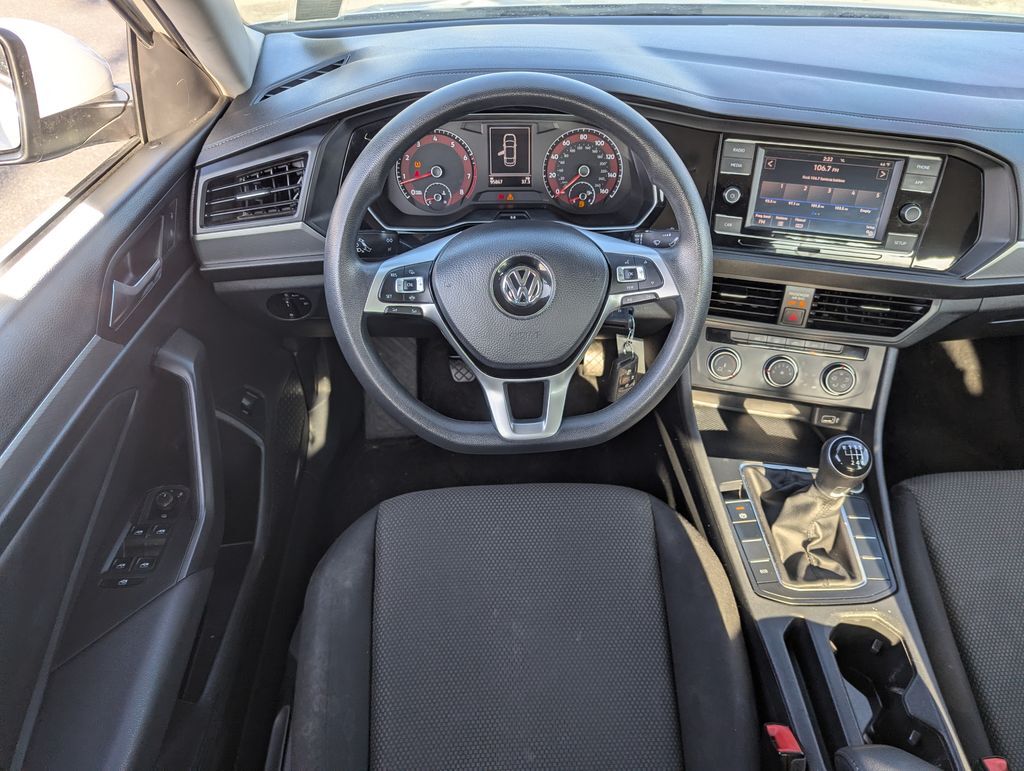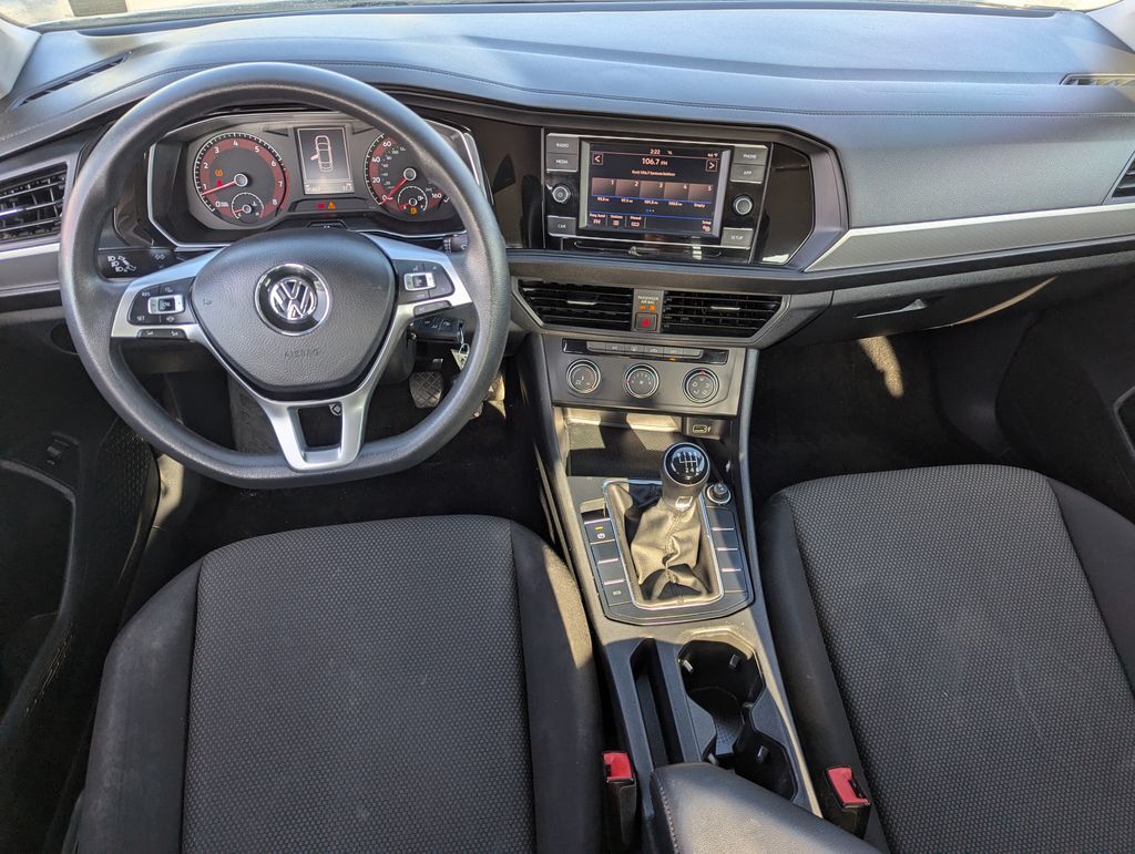 Pure White 2019 Volkswagen Jetta 1.4T S FWD 6-Speed Manual 1.4L TSI Black Cloth.