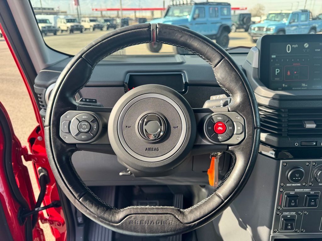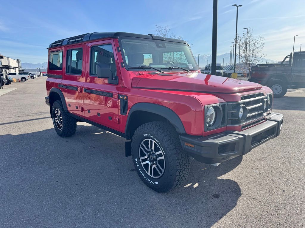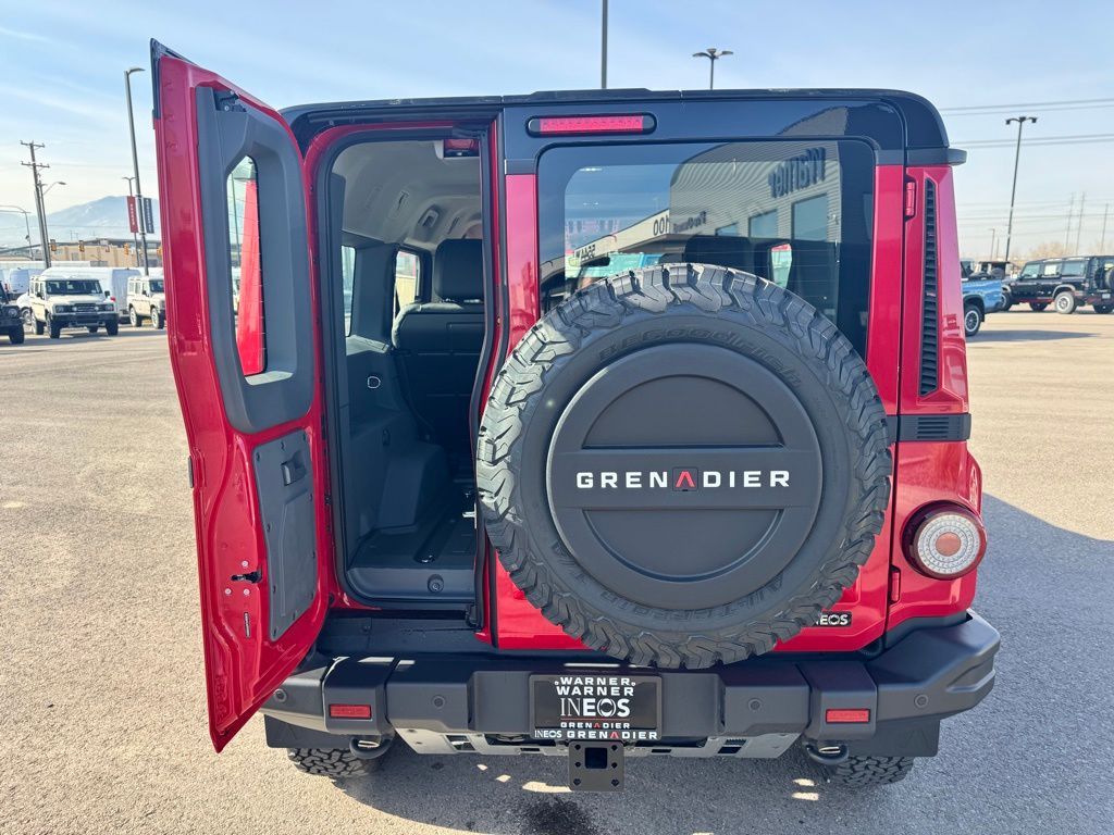 Devil Red 2026 INEOS Grenadier 4WD 8-Speed Automatic 3.0L I6 Rough Pack with 17'' Diamond Cut Alloy Wheels, Black Leather Heated Front Seats, Inky Black Contrast Roof, 2'' NAS Tow Hitch and Electrics, Front and Rear Locking Differentials, High Load Auxiliary Switch Panel, Compass with Altimeter, Utility Flooring, Black Saddle Leather Driver's Pack