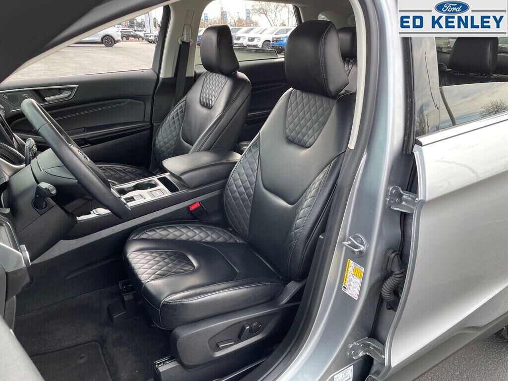 It warns of approaching vehicles with Cross-Traffic Alert. Our dealership has already run the CARFAX report and it is clean. A clean CARFAX is a great asset for resale value in the future. The leather seats in this Ford Edge are a must for buyers looking for comfort, durability, and style. The Ford Edge offers Automatic Climate Control for personalized comfort. Keep your hands warm all winter with a heated steering wheel in this model . The rear parking assist technology on this mid-size suv will put you at ease when reversing. The system alerts you as you get closer to an obstruction. Apple CarPlay: Seamless smartphone integration for this Ford Edge - stay connected and entertained on the go! This model offers Android Auto for seamless smartphone integration. This mid-size suv features a hands-free Bluetooth phone system. Never get into a cold vehicle again with the remote start feature on this unit.