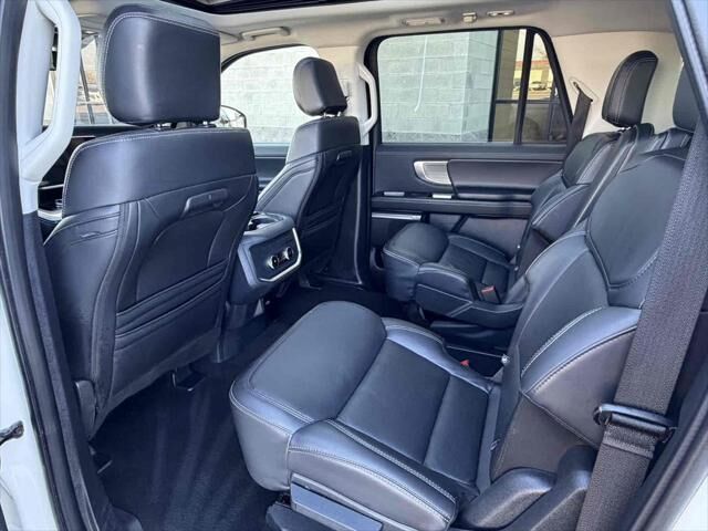 Safety is paramount in this Expedition, featuring automatic emergency braking, lane-keeping assist, and a comprehensive airbag system including Safety Canopy curtain airbags for all three rows.