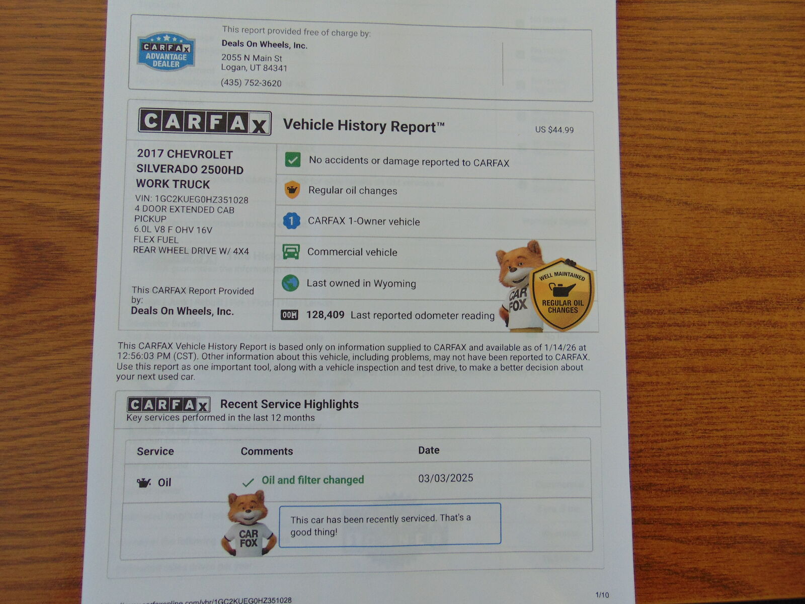 CARFAX 1-OWNER, REGULAR OIL CHANGES, AND NO ACCIDENTS REPORTED ON THIS 2017 CHEVY 2500HD WORK TRUCK 4X4, EXTENDED CAB, LONG BED, WITH THE 6.0L V8 MOTOR, AUTOMATIC TRANSMISSION, AND 128,692 MILES. THIS CHEVY COMES EQUIPPED WITH GRAY CLOTH INTERIOR, 6 PASSENGER SEATING, POWER WINDOWS, LOCKS, AND MIRRORS, TILT, CRUISE, A/C, AM/FM STEREO, BLUETOOTH, USB/AUX. PORTS, REVERSE CAMERA, SPRAY-IN BEDLINER, TOW PACKAGE, TOW MIRRORS, AND MUCH MORE!! THIS CHEVY IS IN EXCELLENT CONDITION INSIDE AND OUT! IT IS ON A CLEAN TITLE AND ACTUAL MILES. ALL REGULAR OIL CHANGES HAVE BEEN REPORTED THROUGH CARFAX.