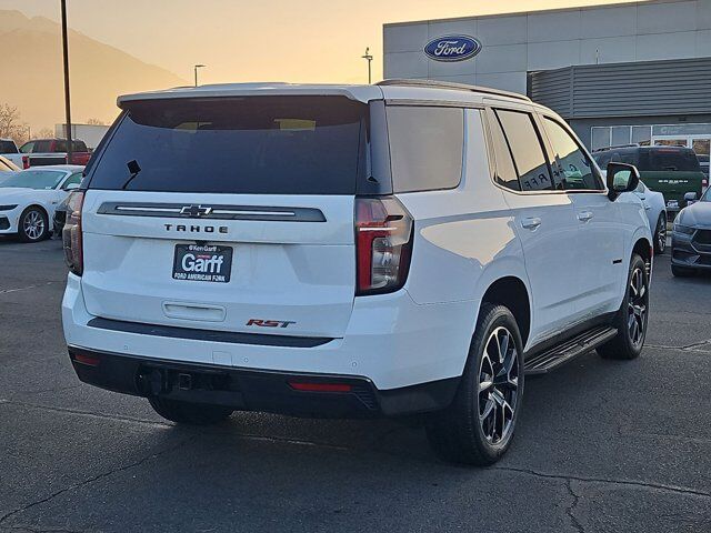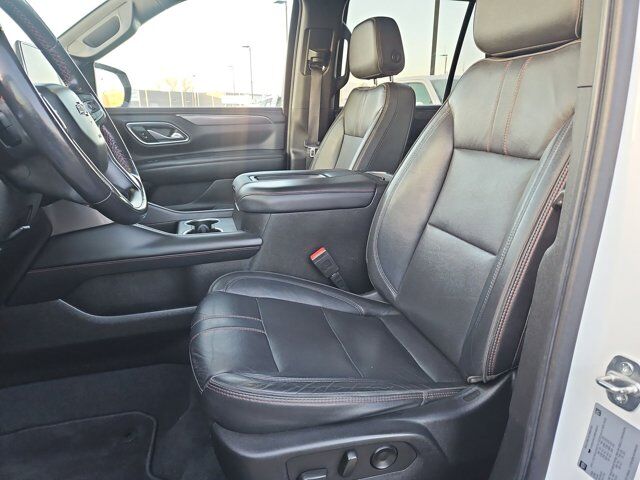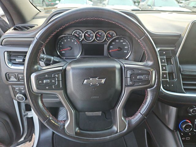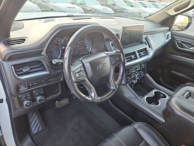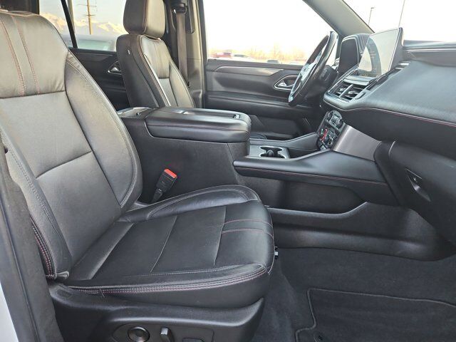LICENSE PLATE FRONT MOUNTING PACKAGE,WHEELS 22 X 9 (55.9 CM X 22.9 CM) BRIGHT MACHINED HIGH-GLOSS BLACK PAINTED (Includes (SFE) wheel locks LPO.) (STD),NOT EQUIPPED WITH STEERING COLUMN LOCK see dealer for details (Most vehicles built on or after 7-5-2021 will have (R7N) Not Equipped with Steering Column Lock which deletes (N06) Steering Column Lock.),SUMMIT WHITE,AUDIO SYSTEM CHEVROLET INFOTAINMENT 3 PLUS SYSTEM 10.2 DIAGONAL HD COLOR TOUCHSCREEN AM/FM stereo Bluetooth audio streaming for 2 active devices Apple CarPlay and Android Auto capable enhanced voice recognition in-vehicle apps cloud connected personalization for select infotainment and vehicle settings. Subscription required for enhanced and connected services after trial period. (STD),JET BLACK/VICTORY RED PERFORATED LEATHER SEATING SURFACES 1ST AND 2ND ROW,REAR AXLE 3.23 RATIO,TRANSMISSION 10-SPEED AUTOMATIC electronically controlled with overdrive includes Traction Select System including tow/haul (Most vehicles built on or after 6-7-2021 with a V8 engine will have (NSS) Not Equipped with Automatic Stop/Start which removes Automatic Stop/Start Engine control stop/start disable button and its content.) (STD),NOT EQUIPPED WITH AUTOMATIC STOP/START SEE DEALER FOR DETAILS (Most vehicles built on or after 6-7-2021 with a V8 engine will have (NSS) Not Equipped with Automatic Stop/Start which removes Automatic Stop/Start Engine control stop/start disable button and its content.),RST PREFERRED EQUIPMENT GROUP includes standard equipment,GVWR 7500 LBS. (3402 KG) (STD),SEATS FRONT BUCKET (STD),ENGINE 5.3L ECOTEC3 V8 with Dynamic Fuel Management Direct Injection and Variable Valve Timing includes aluminum block construction (355 hp [265 kW] @ 5600 rpm 383 lb-ft of torque [518 Nm] @ 4100 rpm) (STD),Locking/Limited Slip Differential,Four Wheel Drive,Tow Hitch,Power Steering,ABS,4-Wheel Disc Brakes,Aluminum Wheels,Wheel Locks,Tires - Front Performance,Tires - Rear Performance,Conventional Spare Tire,Wheel Locks,Conventional Spare Tire,Luggage Rack,Running Boards/Side Steps,Automatic Highbeams,Heated Mirrors,Power Mirror(s),Privacy Glass,Intermittent Wipers,Variable Speed Intermittent Wipers,Rain Sensing Wipers,Intermittent Wipers,Remote Trunk Release,Power Liftgate,AM/FM Stereo,MP3 Capability,Bluetooth Connection,Auxiliary Audio Input,Smart Device Integration,Premium Sound System,MP3 Capability,Bluetooth Connection,Auxiliary Audio Input,Satellite Radio,Requires Subscription,HD Radio,Bluetooth Connection,Bluetooth Connection,Smart Device Integration,WiFi Hotspot,Bucket Seats,Immobilizer,Keyless Start,Leather Seats,Power Driver Seat,Power Passenger Seat,Driver Adjustable Lumbar,Passenger Adjustable Lumbar,Heated Front Seat(s),Pass-Through Rear Seat,Rear Bench Seat,3rd Row Seat,Floor Mats,Adjustable Steering Wheel,Leather Steering Wheel,Cruise Control,Steering Wheel Audio Controls,Front Collision Warning,Power Door Locks,Keyless Entry,Power Door Locks,Remote Engine Start,Cruise Control,Universal Garage Door Opener,Security System,MP3 Capability,Auxiliary Audio Input,MP3 Capability,Auxiliary Audio Input,Power Windows,Power Windows,Power Windows,Seat Memory,Climate Control,Multi-Zone A/C,A/C,Rear A/C,A/C,Rear A/C,Rear Defrost,Auto-Dimming Rearview Mirror,Driver Vanity Mirror,Passenger Vanity Mirror,Driver Illuminated Vanity Mirror,Passenger Illuminated Visor Mirror,Front Collision Mitigation,Front Collision Warning,Traction Control,Stability Control,Brake Assist,Daytime Running Lights,Driver Restriction Features,Driver Air Bag,Passenger Air Bag,Front Side Air Bag,Front Head Air Bag,Rear Head Air Bag,Passenger Air Bag Sensor,Telematics,Requires Subscription,Rear Parking Aid,Back-Up Camera,Front Collision Mitigation,Front Collision Warning,Child Safety Locks,Tire Pressure Monitor