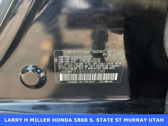 CARFAX One-Owner.Larry H. Miller Honda Murray offers this 2008 Obsidian Black Pearl Subaru Impreza 2.5i AWD It is loaded with many standard and optional features including: ABS brakes, Air Conditioning, Anti-whiplash front head restraints, Bumpers: body-color, CD player, Driver door bin, Driver vanity mirror, Dual front impact airbags, Dual front side impact airbags, Electronic Stability Control, Four wheel independent suspension, Front anti-roll bar, Front Bucket Seats, Front Center Armrest, Front reading lights, Illuminated entry, Low tire pressure warning, Occupant sensing airbag, Outside temperature display, Overhead airbag, Panic alarm, Passenger door bin, Passenger vanity mirror, Power door mirrors, Power steering, Power windows, Radio data system, Rear window defroster, Remote keyless entry, Security system, Speed control, Speed-sensing steering, Split folding rear seat, Sport-Design Front Seats, Tachometer, Tilt steering wheel, Variably intermittent wipers, and Woven Cloth Upholstery.