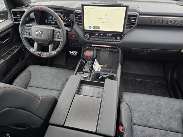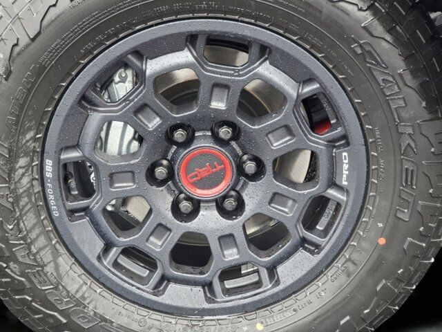 Navigation system: Drive Connect Cloud Navigation (1-year trial subscription),TRD Pro Package,12 Speakers,AM/FM radio: SiriusXM,Radio data system,Radio: Premium Audio with JBL,Air Conditioning,Automatic temperature control,Front dual zone A/C,Rear window defroster,Memory seat,Power driver seat,Power steering,Power windows,Remote keyless entry,Steering wheel mounted audio controls,Speed-sensing steering,Traction control,4-Wheel Disc Brakes,ABS brakes,Dual front impact airbags,Dual front side impact airbags,Emergency communication system: Safety Connect (up to 10-year trial subscription),Front anti-roll bar,Front wheel independent suspension,Knee airbag,Low tire pressure warning,Occupant sensing airbag,Overhead airbag,Power moonroof,Black Front Bumper Letters,Brake assist,Electronic Stability Control,Exterior Parking Camera Rear,Auto High-beam Headlights,Delay-off headlights,Front fog lights,Fully automatic headlights,Panic alarm,Security system,Speed control,Auto-dimming door mirrors,Bumpers: body-color,Heated door mirrors,Non-Skid Spray-on Bed Liner,Power door mirrors,Rear step bumper,TRD Cast Aluminum Running Board,TRD PRO Black Bed Lettering,Turn signal indicator mirrors,Apple CarPlay/Android Auto,Auto-dimming Rear-View mirror,Driver door bin,Driver vanity mirror,Front reading lights,Garage door transmitter: HomeLink,Heated and Ventilated Front Bucket Seats,Illuminated entry,Leather Shift Knob,Leather steering wheel,Outside temperature display,Overhead console,Passenger vanity mirror,Rear reading lights,Rear seat center armrest,Sport steering wheel,Tachometer,Telescoping steering wheel,Tilt steering wheel,Trip computer,Voltmeter,Front Bucket Seats,Front Center Armrest,Heated front seats,Power passenger seat,SofTex Seat Trim,Split folding rear seat,Ventilated front seats,Passenger door bin,Tri-Fold Tonneau Cover,Alloy wheels,Wheels: 18 Black Forged Aluminum BBS,Variably intermittent wipers,3.31 Axle Ratio