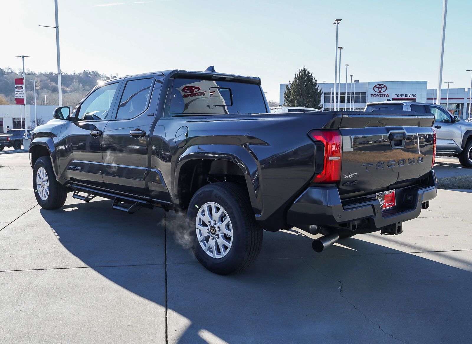 Boasts 24 Highway MPG and 19 City MPG! This Toyota Tacoma 4WD boasts a Intercooled Turbo Regular Unleaded I-4 2.4 L/146 engine powering this Automatic transmission. SR5 UPGRADE HEAT -inc: TACOMA Stamped Easy Lower Lift Tailgate, damper, Heated Front Seats, Smart Key w/Digital Key Technology, Digital key enables smartphone to be used instead of a physical key (Remote Connect subscription required), HomeLink Universal Transceiver, JBL Premium Audio, 10 speakers w/JBL FLEX portable Bluetooth speaker, subwoofer and amplifier, Rear Underseat Storage Compartment, Integrated Trailer Brake Controller, multi-information display (MID) screen and trailer brake type, gain and manual trailer brake output controls, Heated Leather-Trimmed Steering Wheel, Power Horizontal Rear Window, SR5 FULL-SIZE SPARE TIRE (245/70R17), REMOVABLE PREDATOR STEP (TMS). This Toyota Tacoma 4WD Features the Following Options PAINT PROTECTION FILM (TMS), MULTIMEDIA SCREEN PROTECTOR - GLASS (TMS), BLACK TAILGATE INSERT (TMS), BLACK BADGE OVERLAY (TMS), ALL WEATHER FLOOR LINERS (TMS), Wi-Fi Connect with 30-day or up to 3GB trial subscription Mobile Hotspot Internet Access, Wheels: 17 Styled Alloy, Variable Intermittent Wipers, Vanity w/Driver And Passenger Auxiliary Mirror, Urethane Gear Shifter Material. Stop By Today Live a little- stop by Tony Divino Toyota located at 777 West Riverdale Rd, Riverdale, UT 84405 to make this car yours today! * Estimated Monthly Payment will depend on vehicle make and model and will be determined upon actual vehicle inspection. All payments are estimates. Tax, title, registration and documentation fee ($349) are extra.* While every reasonable effort is made to ensure the accuracy of this information, we are not responsible for any errors or omissions contained on these pages. Please verify any information in question with Tony Divino Toyota.