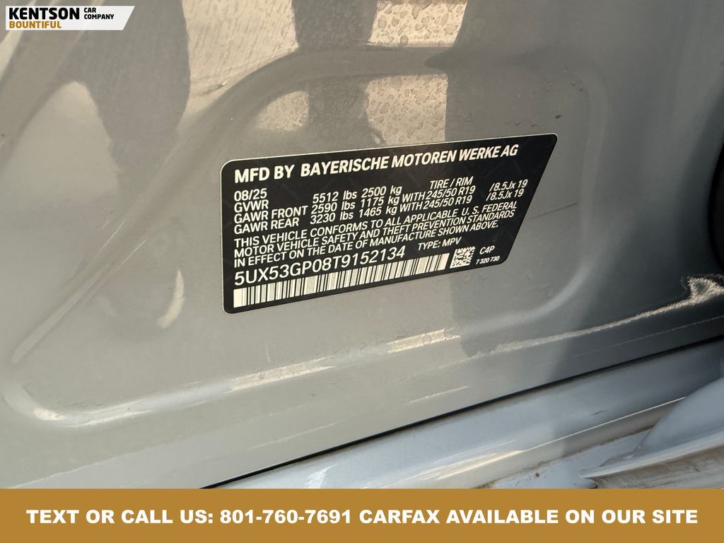 8-Speed Automatic, 12 Speakers, 4-Wheel Disc Brakes, ABS brakes, Air Conditioning, Alloy wheels, AM/FM Radio, AM/FM radio: SiriusXM, Apple CarPlay and Android Auto Compatibility, Auto High-beam Headlights, Auto-dimming door mirrors, Auto-dimming Rear-View mirror, Automatic temperature control, BMW Assist ECall, BMW TeleServices, Brake assist, Bumpers: body-color, Delay-off headlights, Driver door bin, Driver vanity mirror, Dual front impact airbags, Dual front side impact airbags, Electronic Stability Control, Emergency communication system: BMW Assist eCall, Exterior Parking Camera Rear, Four wheel independent suspension, Front anti-roll bar, Front Bucket Seats, Front Center Armrest, Front reading lights, Fully automatic headlights, Garage door transmitter, Genuine wood console insert, Heated door mirrors, Heated Front Seats, Heated front seats, Hi-Fi Sound System, Illuminated entry, Knee airbag, Low tire pressure warning, Lumbar Support, Memory seat, Navigation, Navigation system: BMW Maps Navigation, Occupant sensing airbag, Outside temperature display, Overhead airbag, Overhead console, Panic alarm, Passenger door bin, Passenger vanity mirror, Personal ESIM 5G, Power door mirrors, Power driver seat, Power Front Seats, Power Liftgate, Power moonroof: Panoramic, Power passenger seat, Power steering, Power windows, Radio data system, Rain sensing wipers, Rear anti-roll bar, Rear reading lights, Rear seat center armrest, Rear window defroster, Rear window wiper, Remote keyless entry, Security system, SiriusXM with 360L and 1 Year Trial Subscription, Speed control, Speed-Sensitive Wipers, Split folding rear seat, Spoiler, Sport Seats, Sport steering wheel, Steering wheel mounted audio controls, Tachometer, Telescoping steering wheel, Tilt steering wheel, Traction control, Trip computer, Turn signal indicator mirrors, Variably intermittent wipers, Veganza Perforated and Quilted Upholstery, Wheels: 19'' x 8.5'' Aero Midnight Grey Bicolor, and Wireless Device Charging.