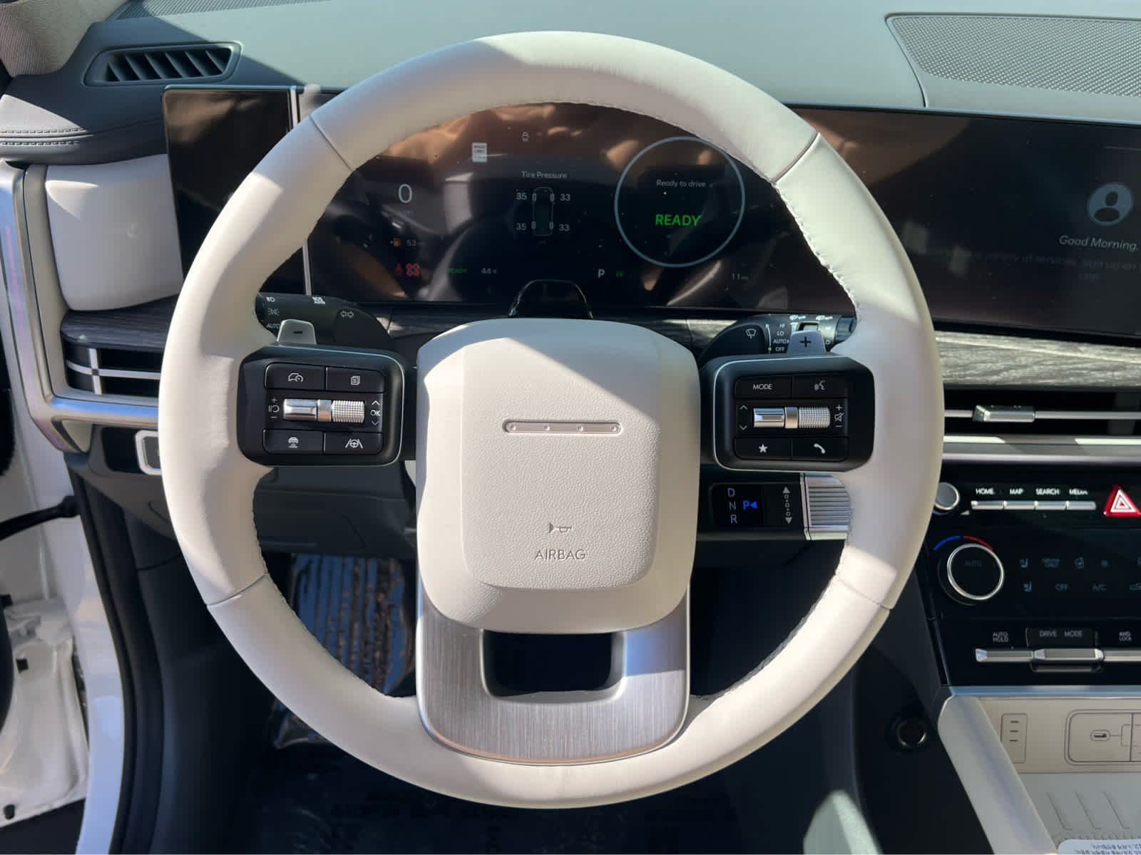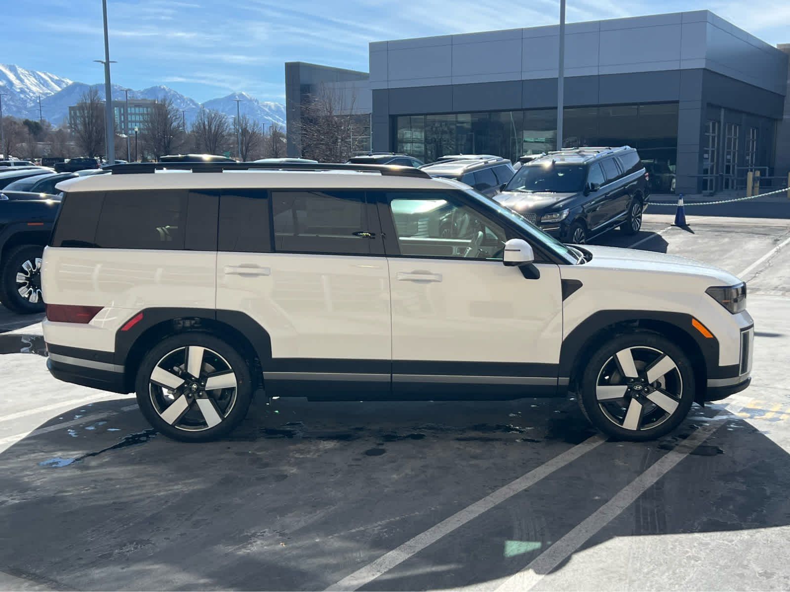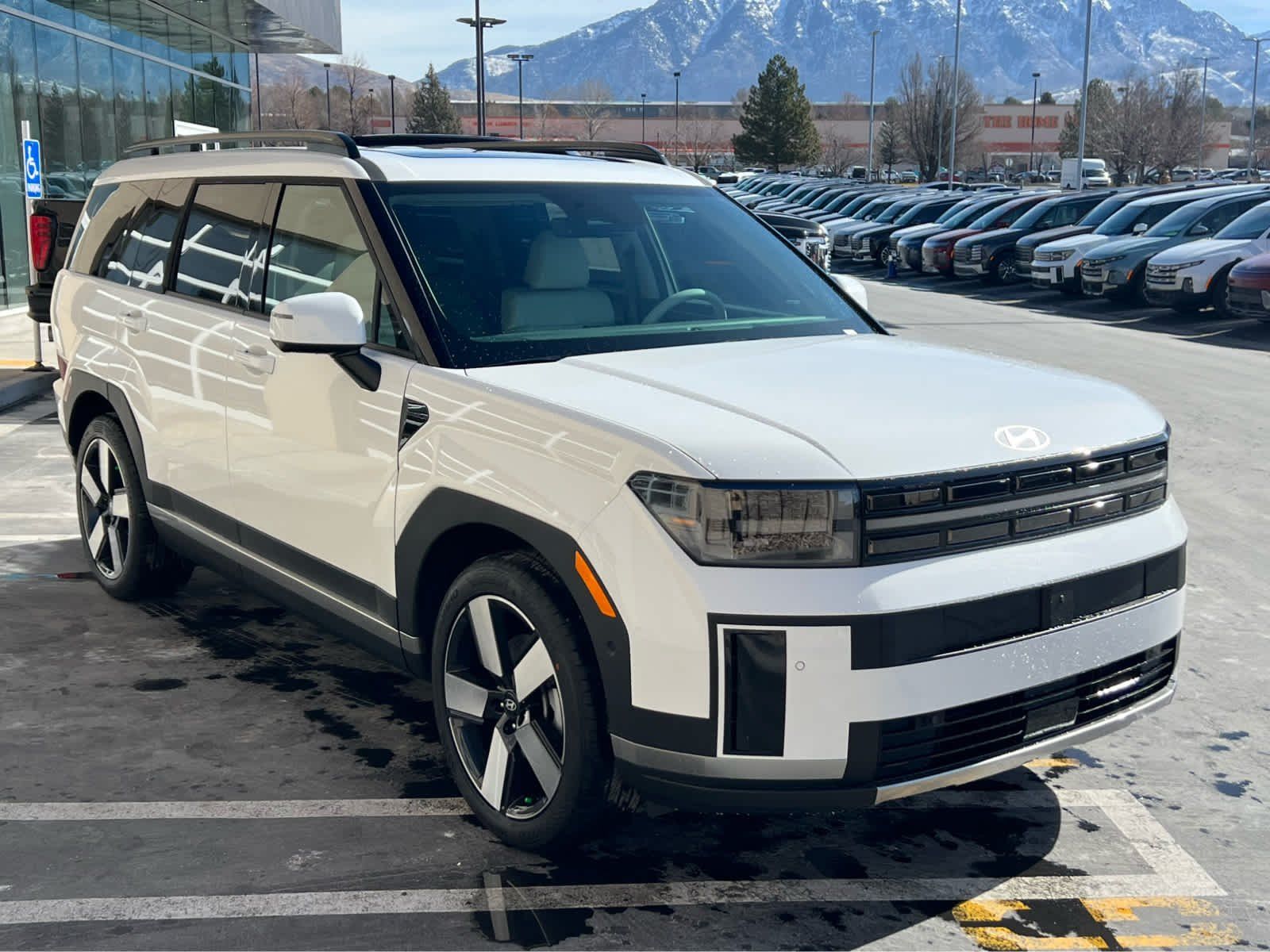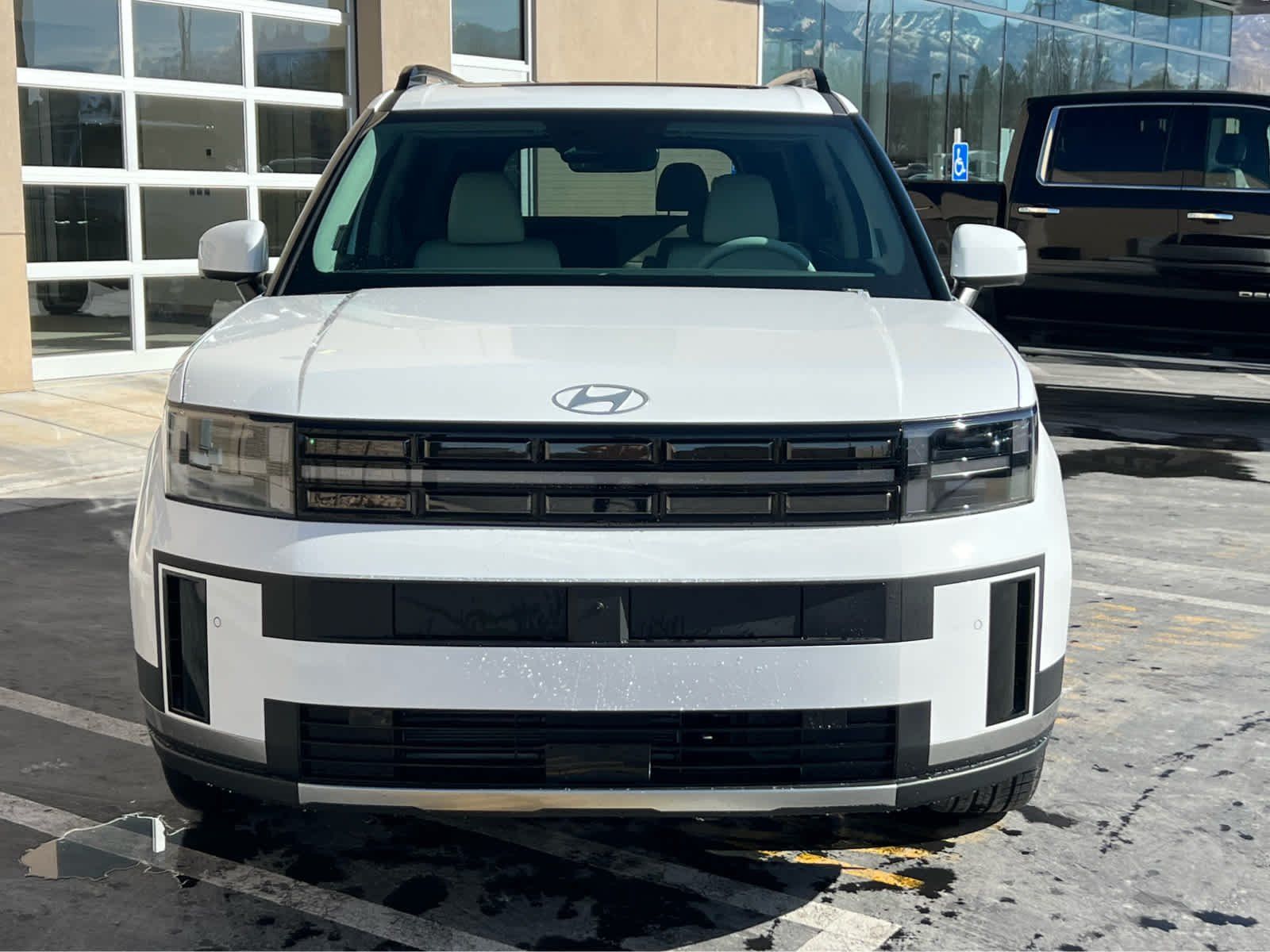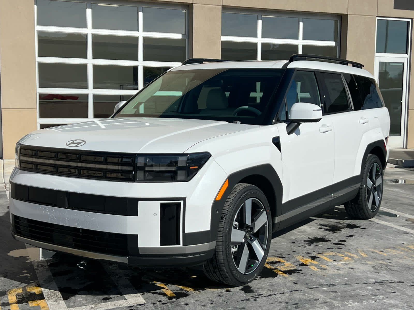 Leather Seats, Third Row Seat, Navigation, All Wheel Drive, Quad Bucket Seats, Power Liftgate, Heated Driver Seat, Heated Rear Seat. Rear Spoiler, MP3 Player, Remote Trunk Release, Privacy Glass. Hyundai Limited with Serenity White exterior and Gray interior features a 4 Cylinder Engine.